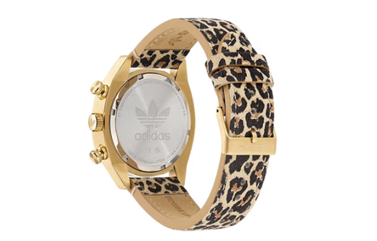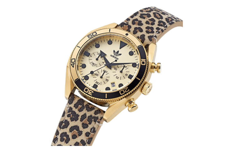 Adidas Originals FASHION Wrist Watch Quartz Movement Leather Strap 43mm Gold Dial Men"s Watches 100m Water Resistant