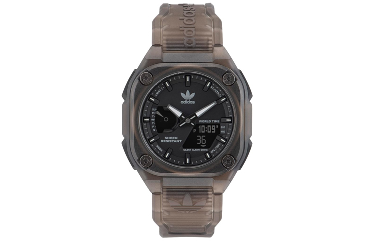 Adidas Originals STREET Wrist Watch Quartz Movement Resin Strap 45mm Black Dial Unisex 100m Water Resistant