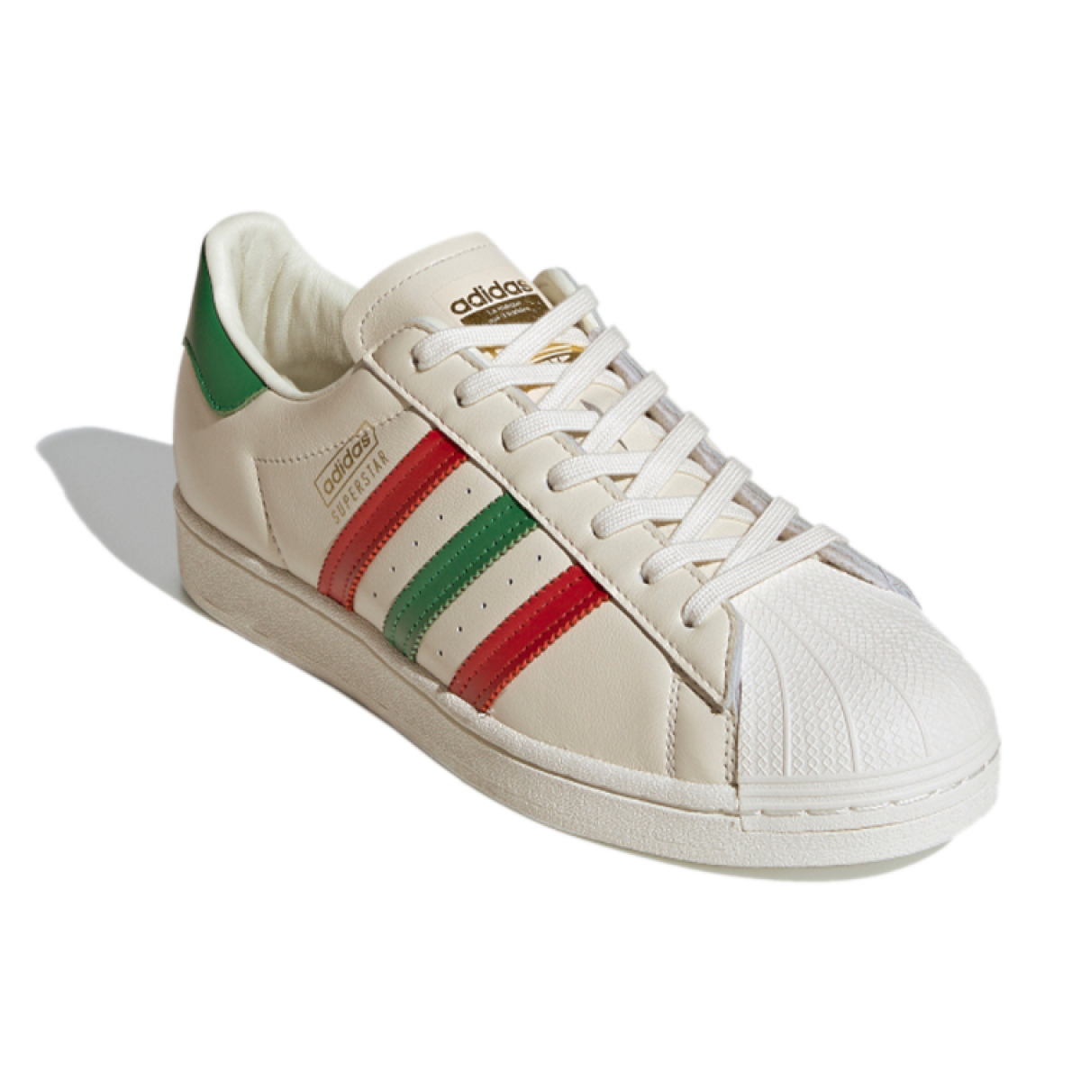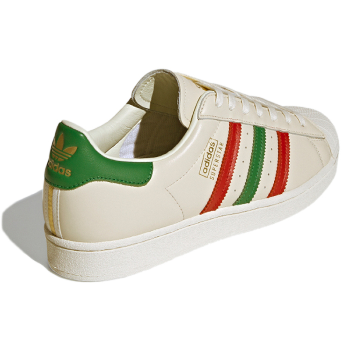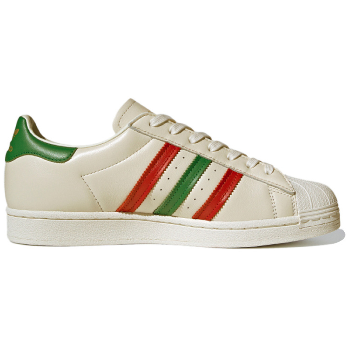 Шикарные кроссовки Adidas Originals Superstar Cream Red Green - идеальный выбор для стильных и модных личностей! Уникальный дизайн в сочетании с высоким качеством материалов обеспечат комфорт и удобство на протяжении всего дня. Будь в центре внимания, выгодно подчеркни свой неповторимый стиль с этой парой кроссовок!
