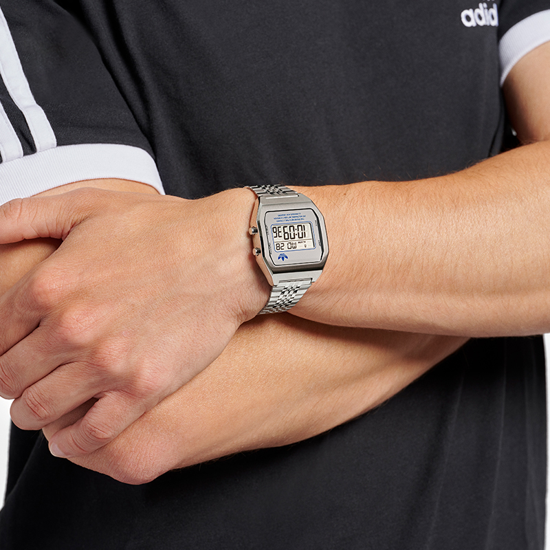 Adidas Originals Wrist Watch Electronic Movement Stainless Steel Strap Gray Dial Unisex 50m Water Resistant