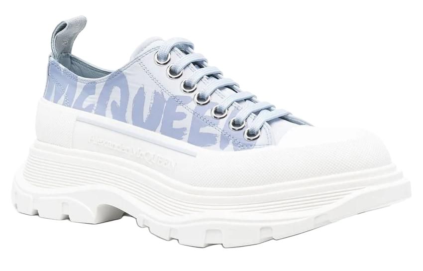 Alexander McQueen Tread Slick Low Lace Up Graffiti Shoes "Blue White" Women"s