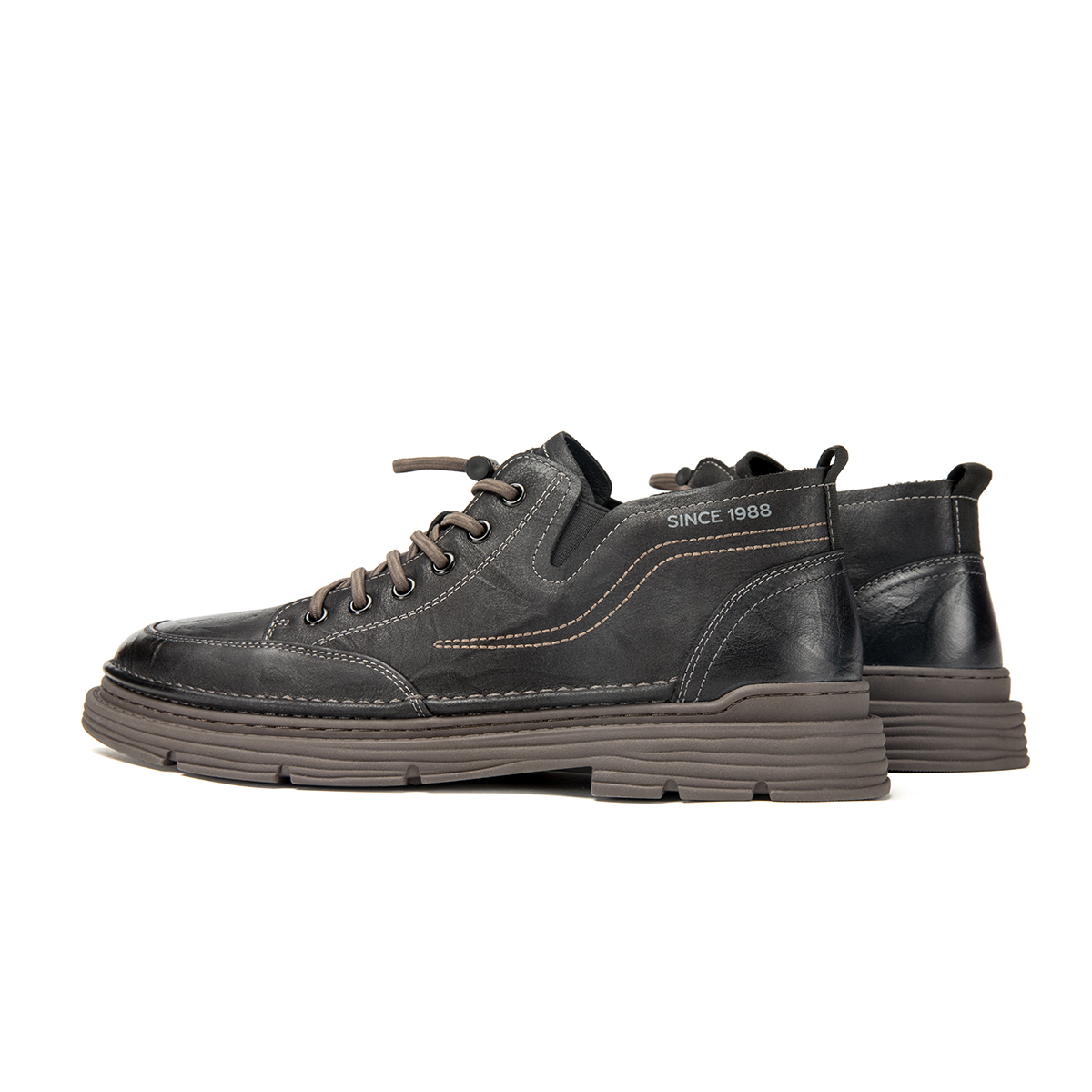 AOKANG Work Boots Men"s Mid top Black/Brown