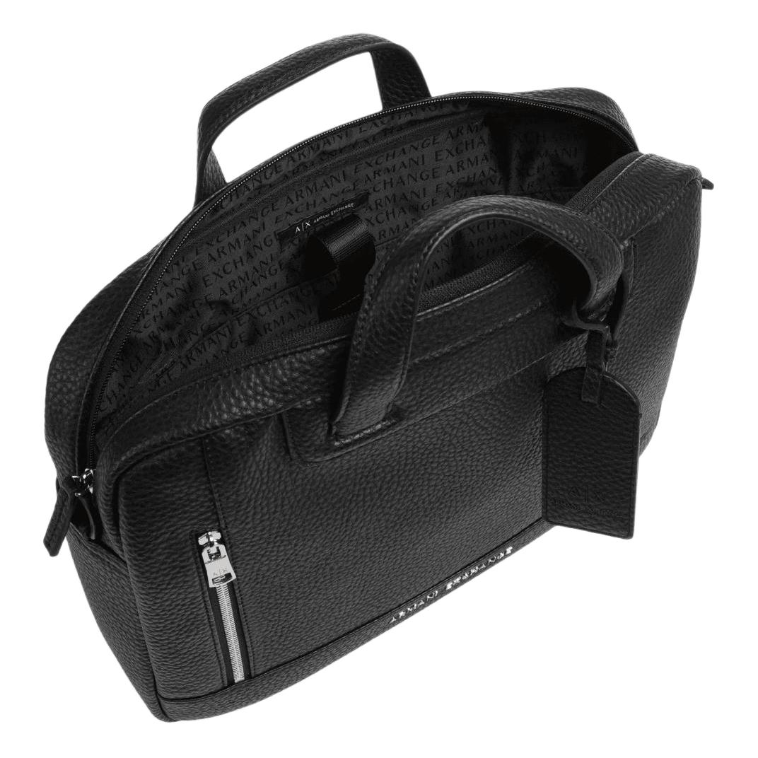 ARMANI EXCHANGEAE Cracked Leather Portable One Shoulder Crossbody Briefcase Men"s Black