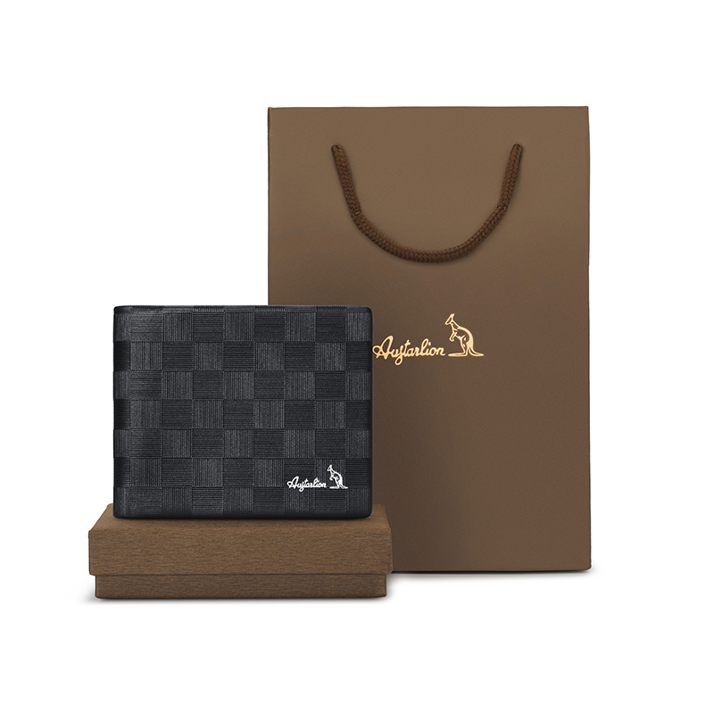 AUGTARLION Cow Leather Multiple Card Slots, Coin Purse, Wallet Men"s Black Premium Box