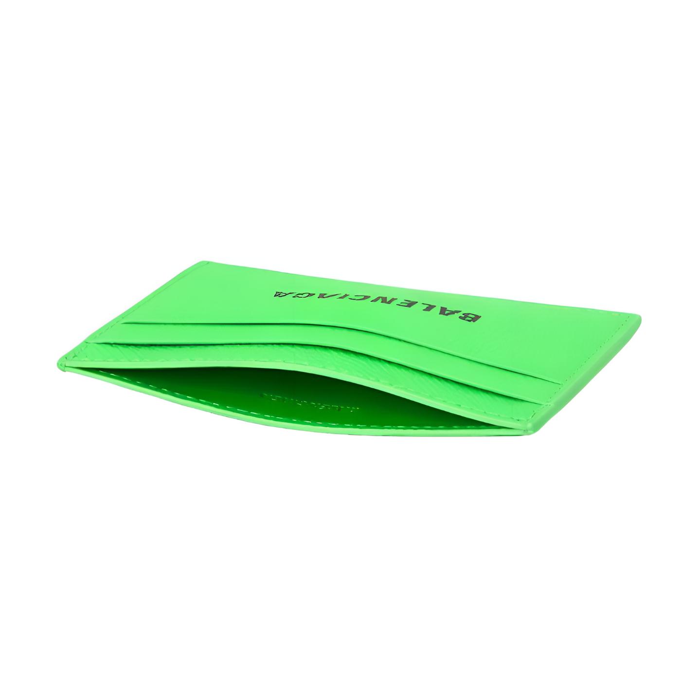 Balenciaga Cash Letter Print Cow Leather Card Holder Card Holder Men"s Green