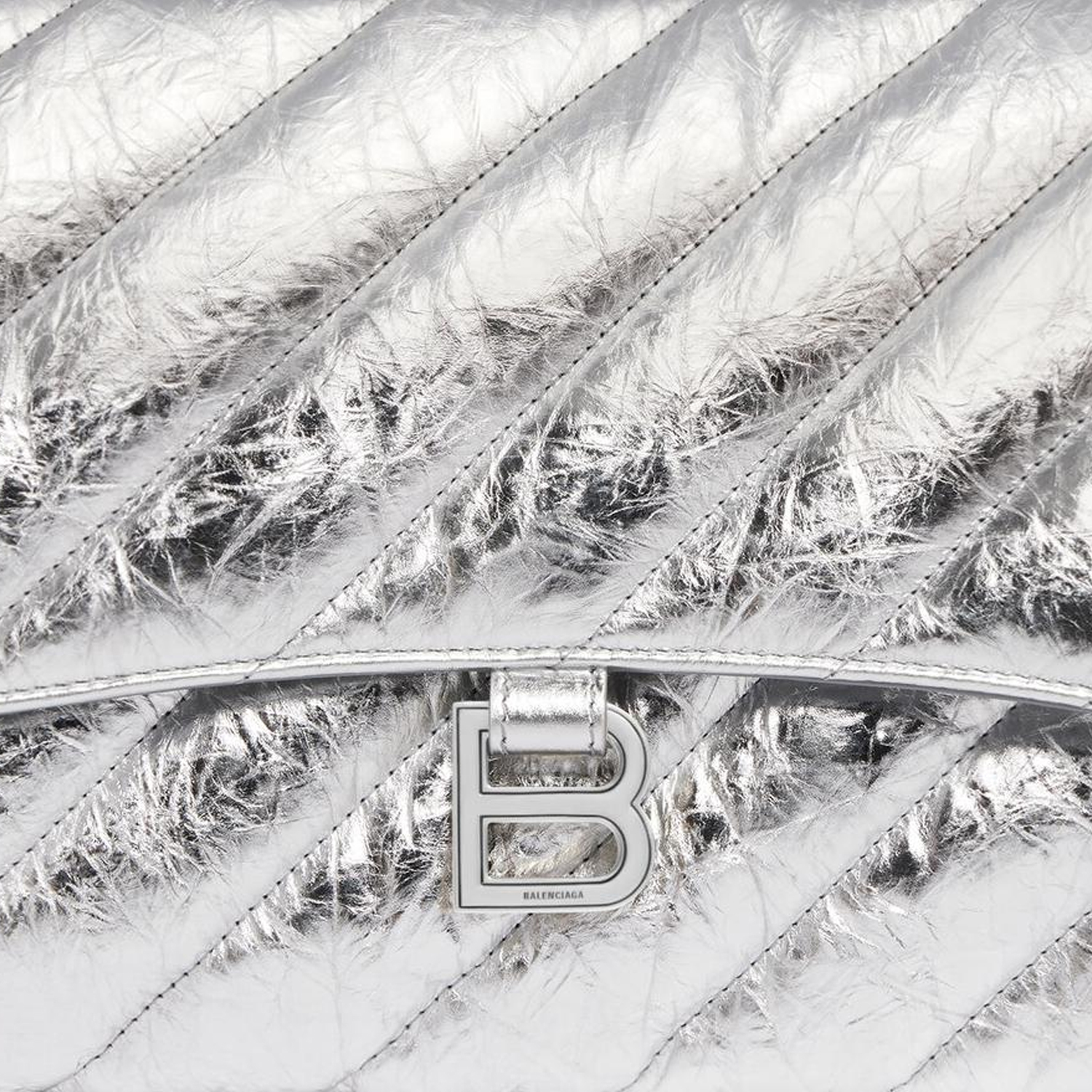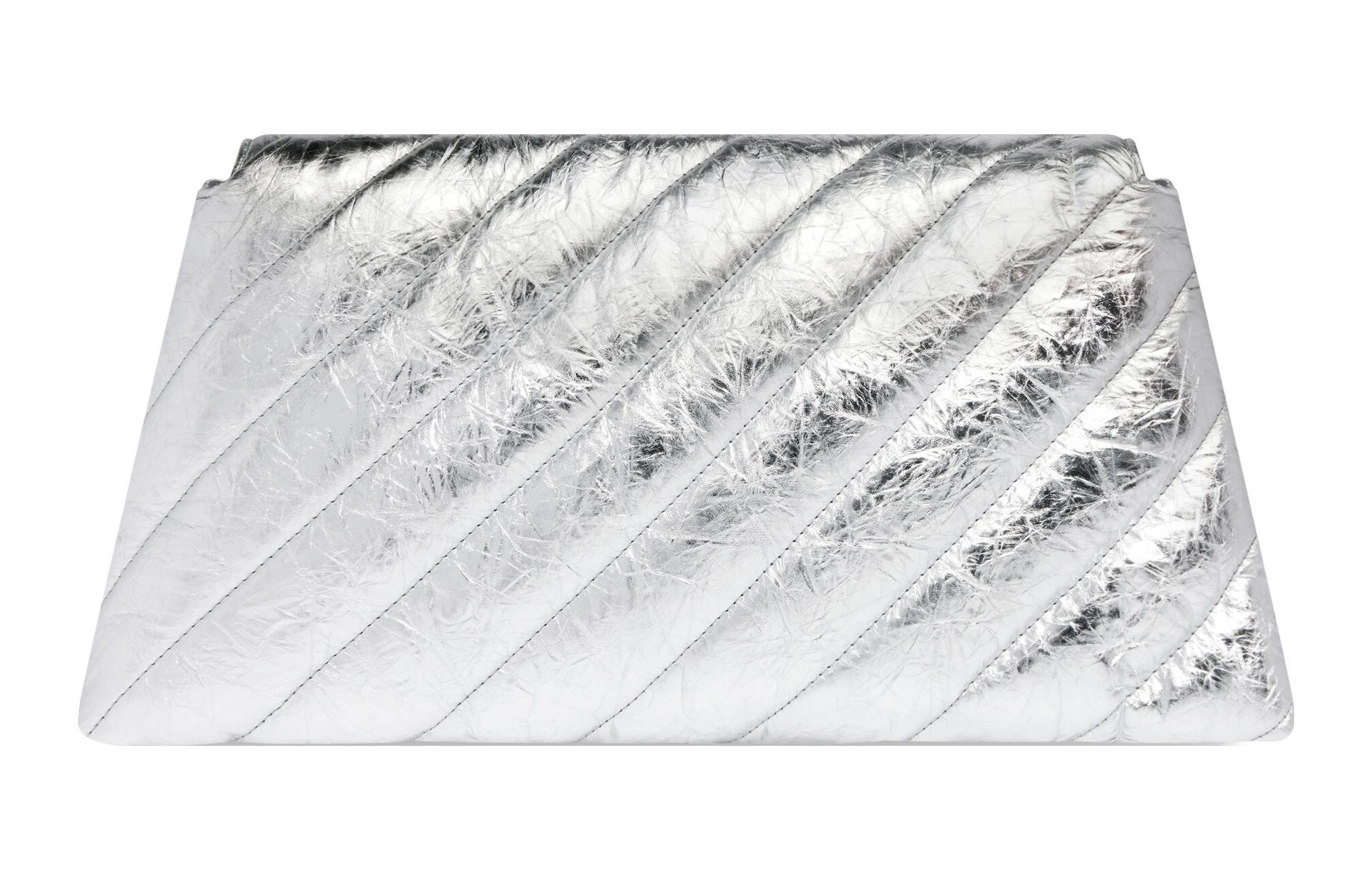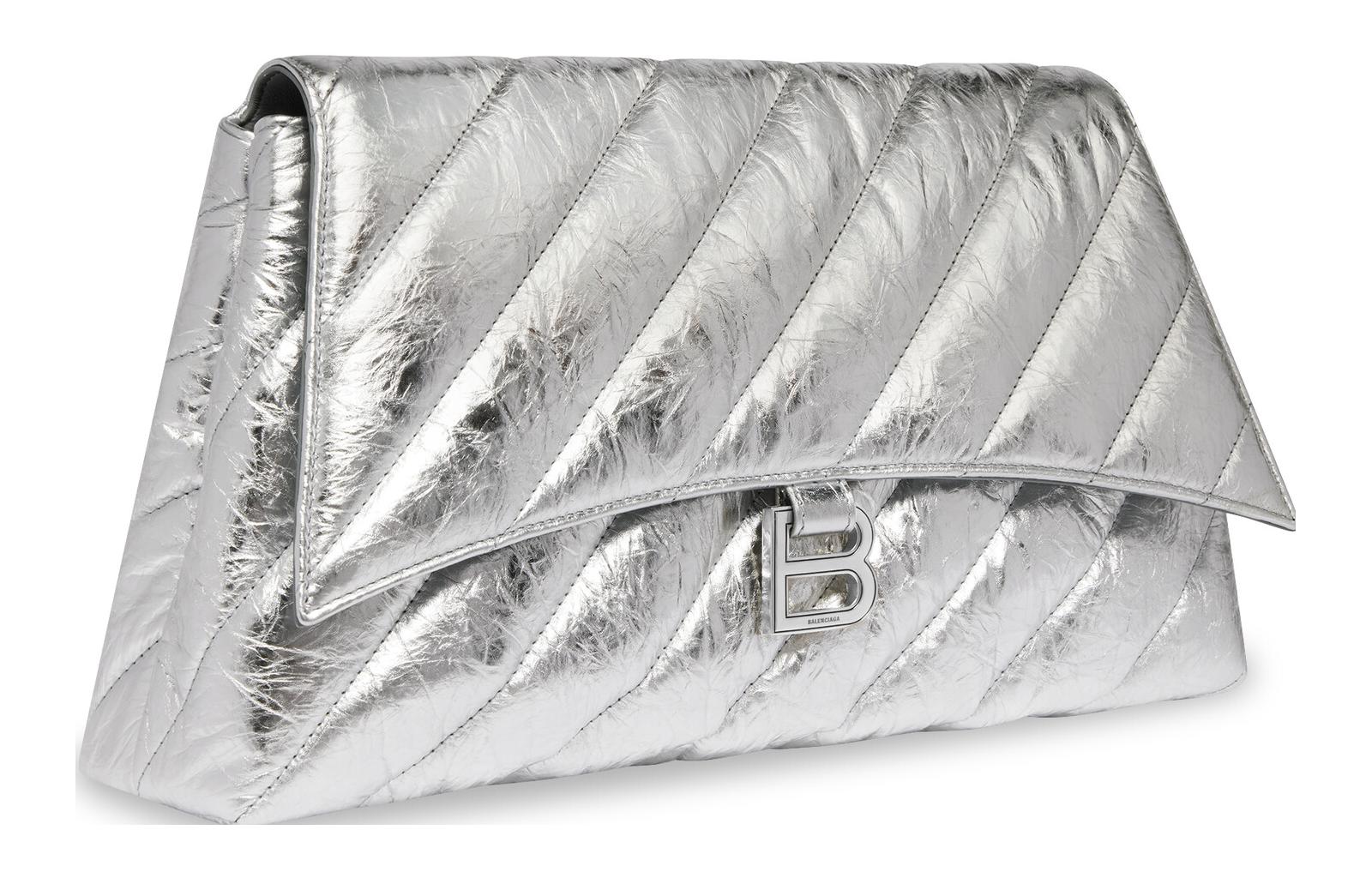 Balenciaga CRUSH Embossed Cow Leather Clutch Large Women"s Silver
