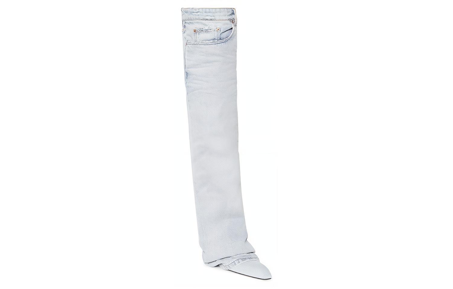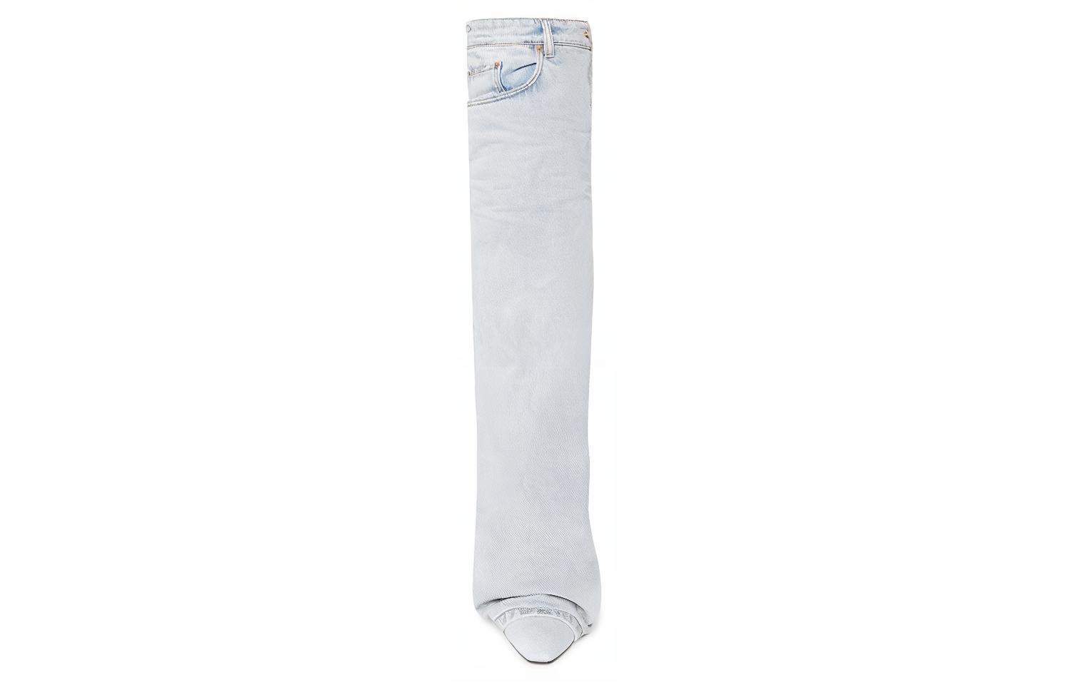 Balenciaga Falkon Cotton Fabric Knee high Boots Women"s Light Blue