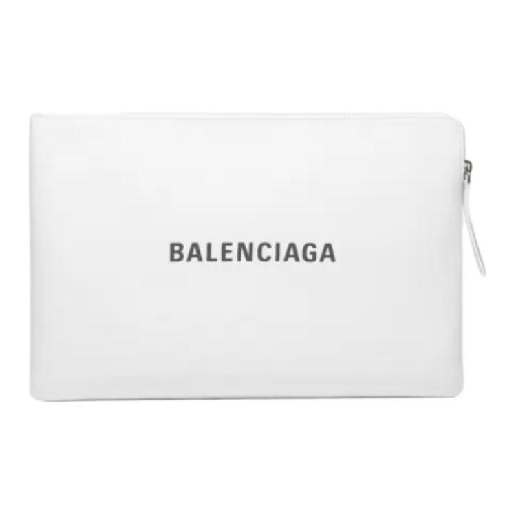 Balenciaga Grain Cow Leather Clutch Large Women"s White