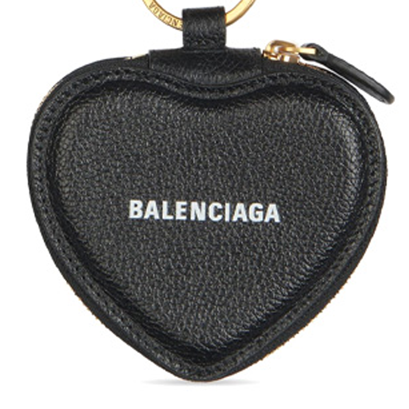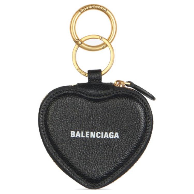 Balenciaga Grain Cow Leather Key Ring Key Pouch Women"s Black