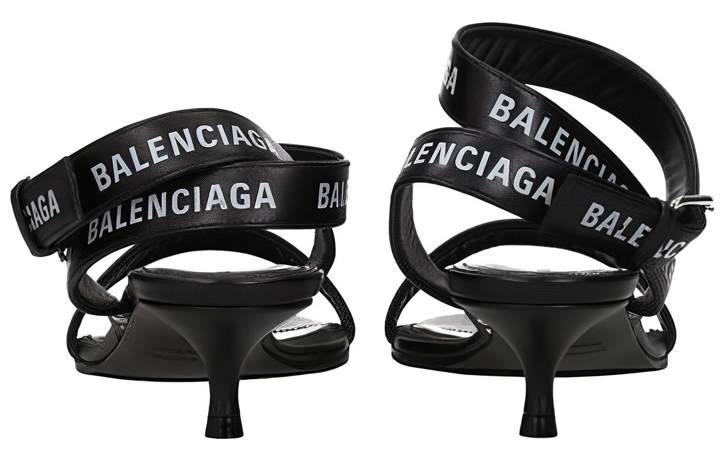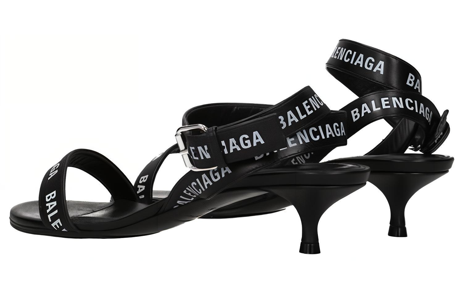 Balenciaga Leather One Strap Sandals 4cm Women"s Black