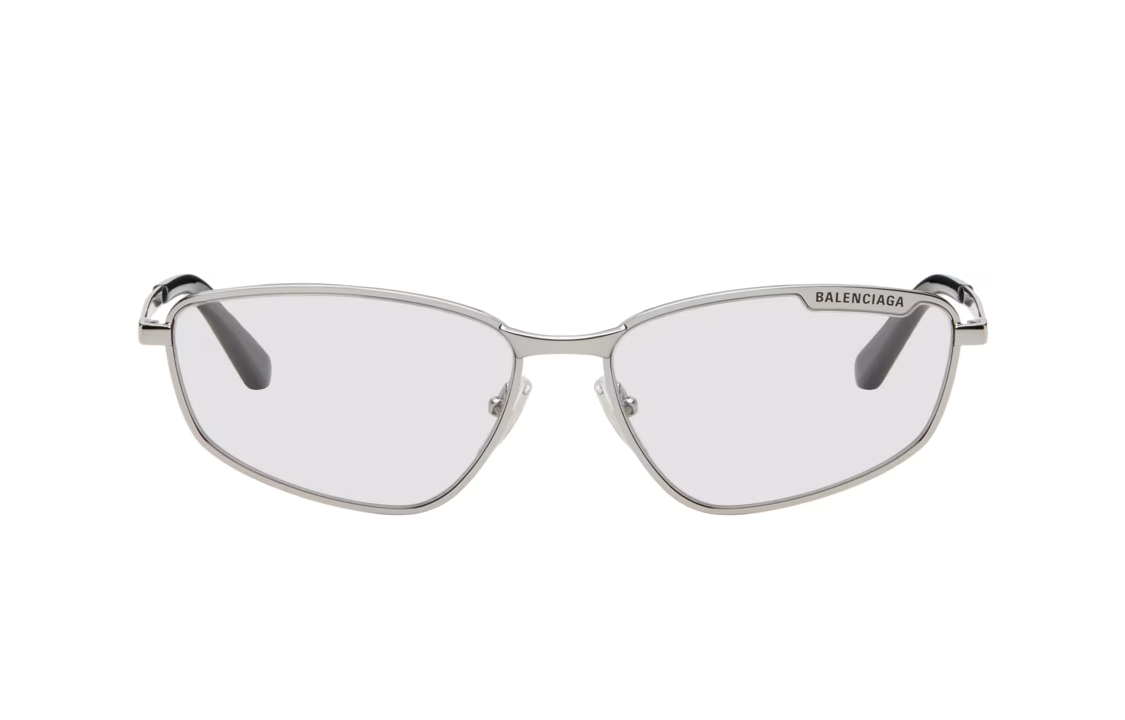 Balenciaga Metal Acetate Irregular Shape Sunglasses Unisex Silver