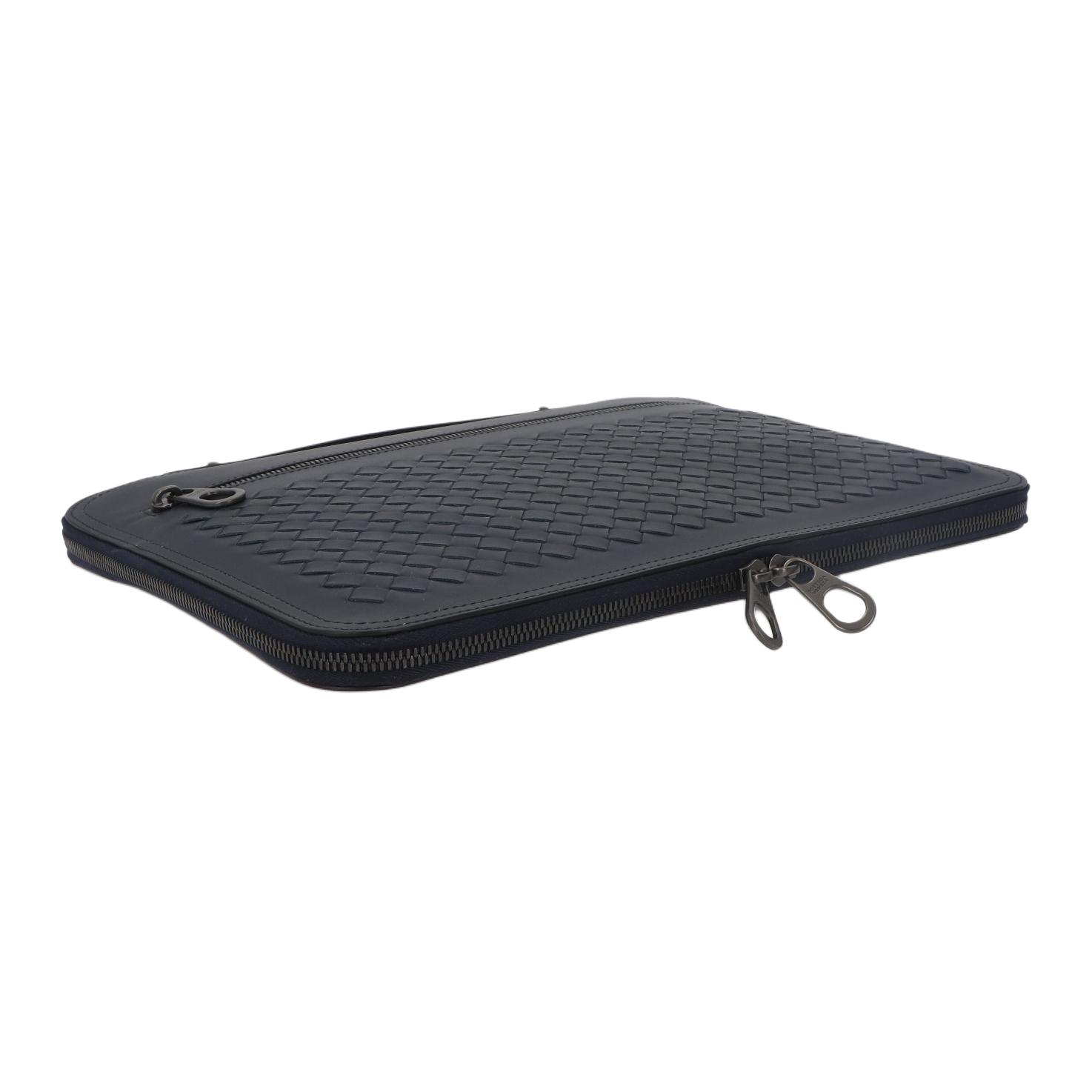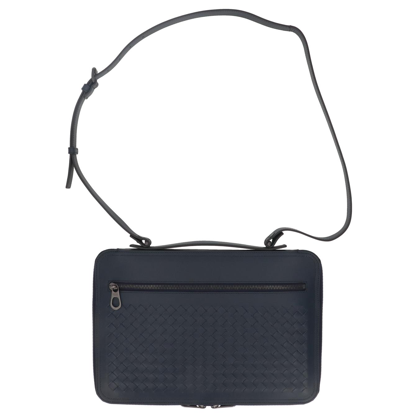 Bottega Veneta Leather Laptop Bag Men"s Marine Blue