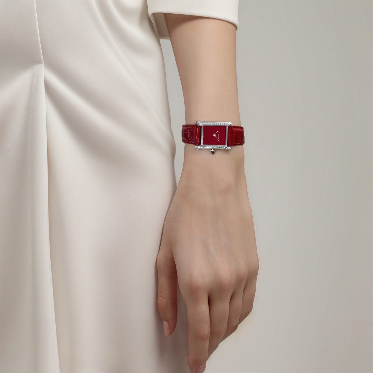 CARTIER Quartz Movement Women"s Watch Watch 22mm Red Watch Dial Stainless Steel Case Crocodile Leather Strap