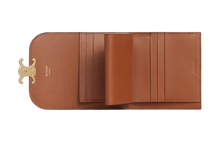 CELINE Triomphe Triumph Gate Canvas Wallet Small Women"s Tawny