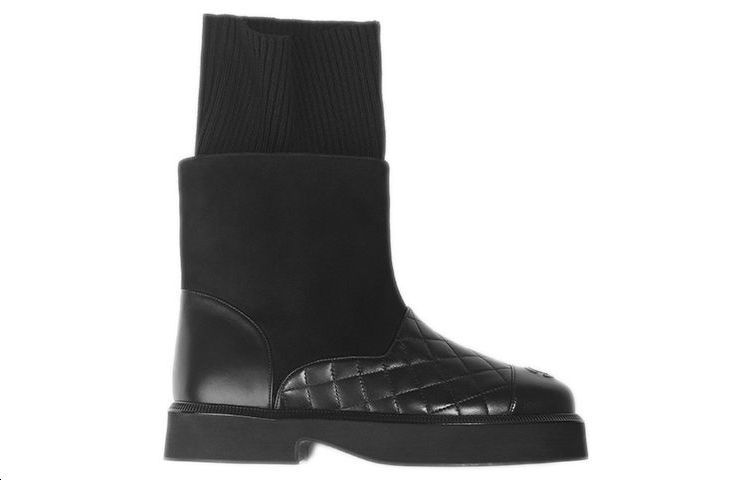 CHANEL Leather Ankle Boots Women"s Black
