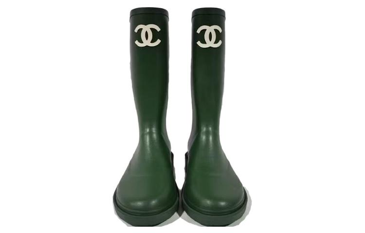 CHANEL Mid Calf Boots Women"s Dark Green