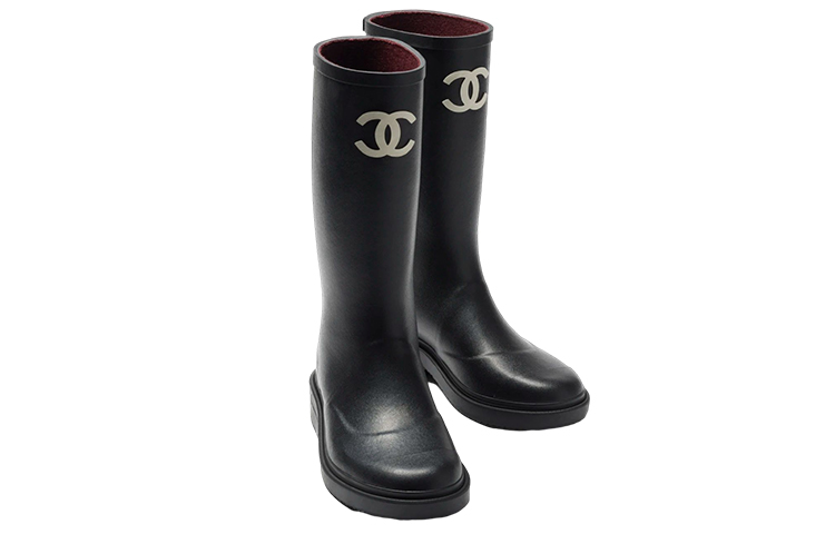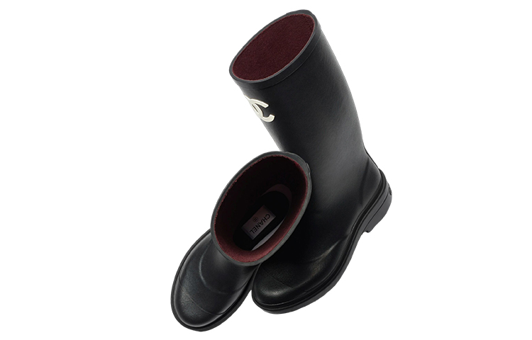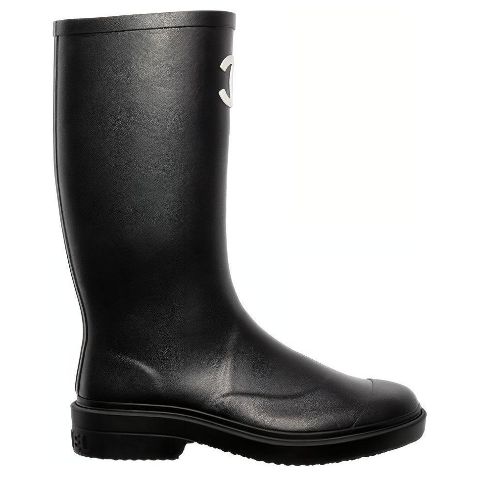 CHANEL Rubber Rain Boots Black Women"s