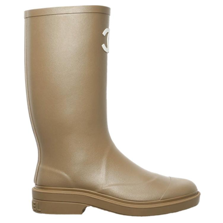 CHANEL Rubber Rain Boots Dark Beige Women"s