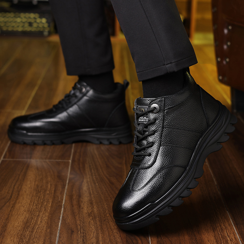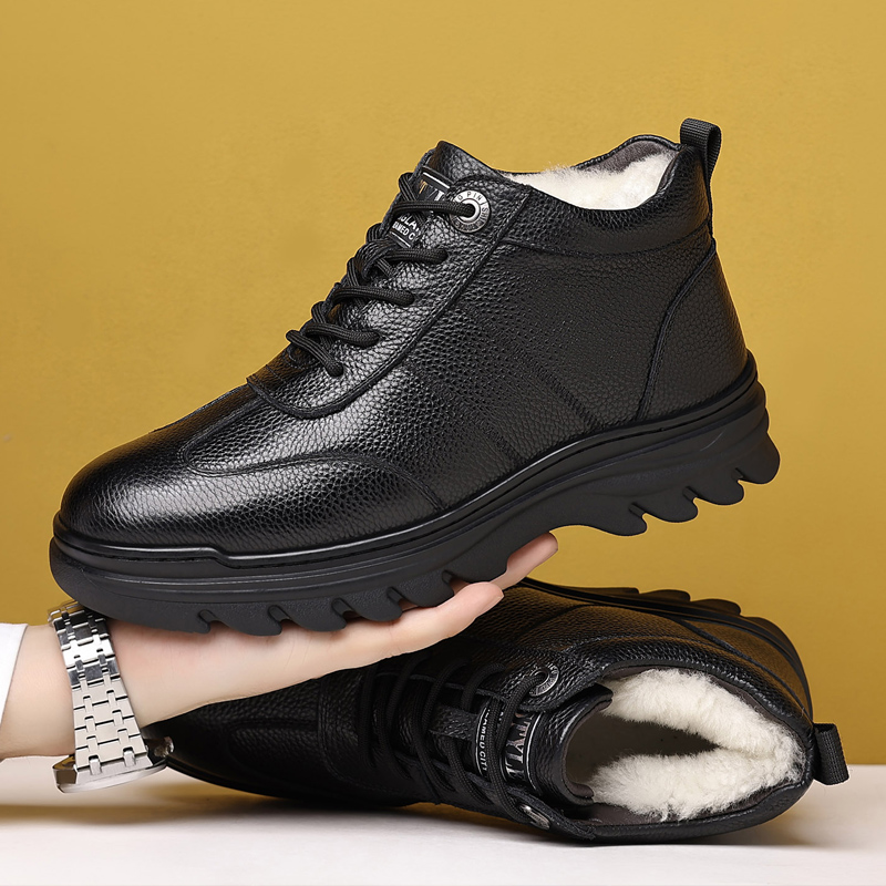 CHENGSHILUOTUO Top Grain Cow Leather Mid top Elderly Insulated Shoes Men"s