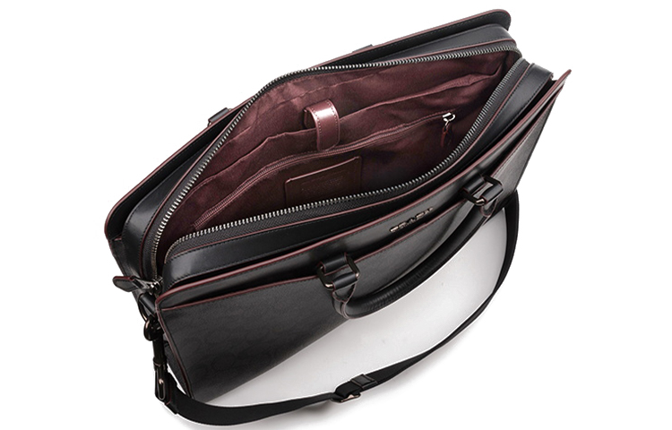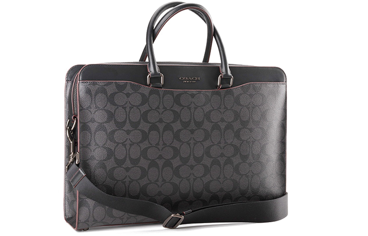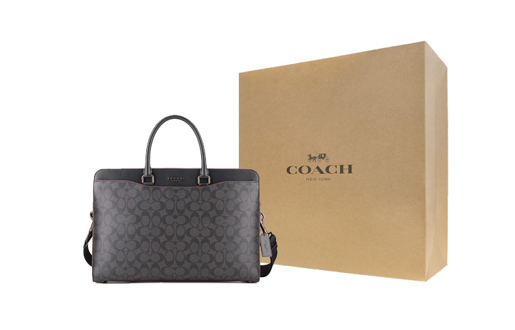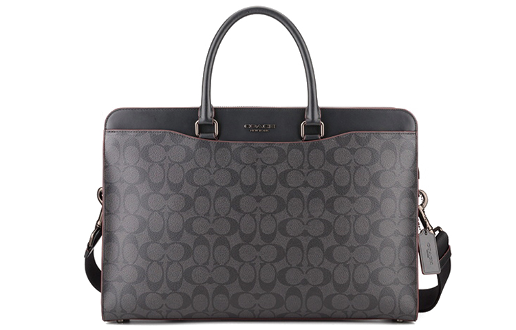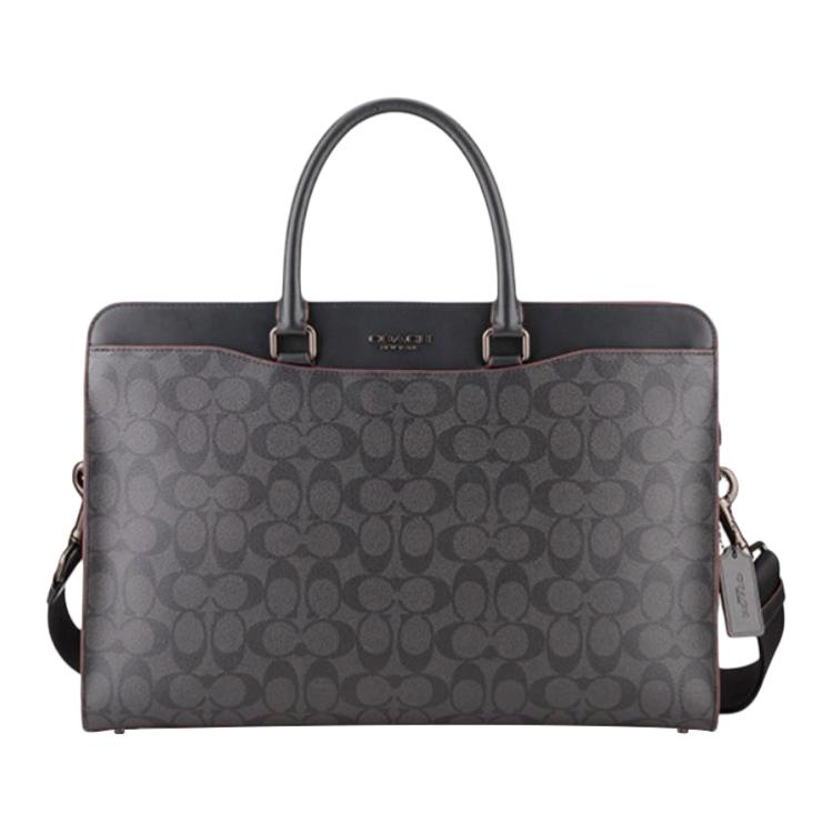 COACH Beckett Coated Canvas With Refined Calfskin Briefcase, Shoulder Bag, Crossbody Bag, Handbag Large Men"s Black