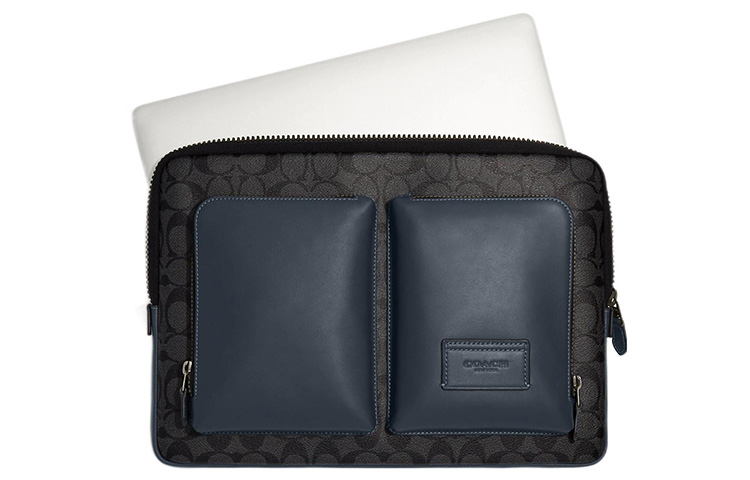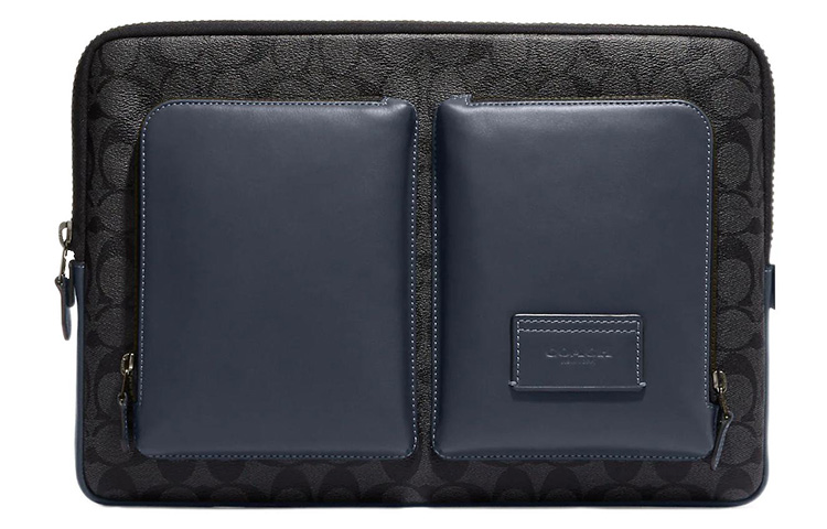 COACH Coated Canvas Briefcase Laptop Bag Large Men"s Charcoal With Denim Color