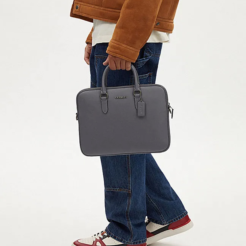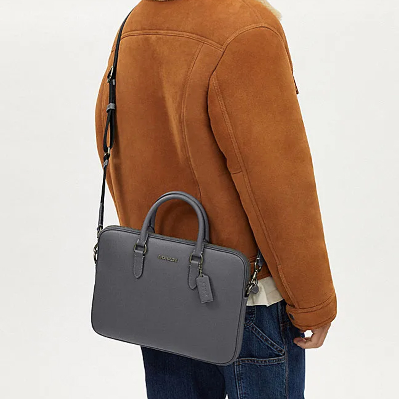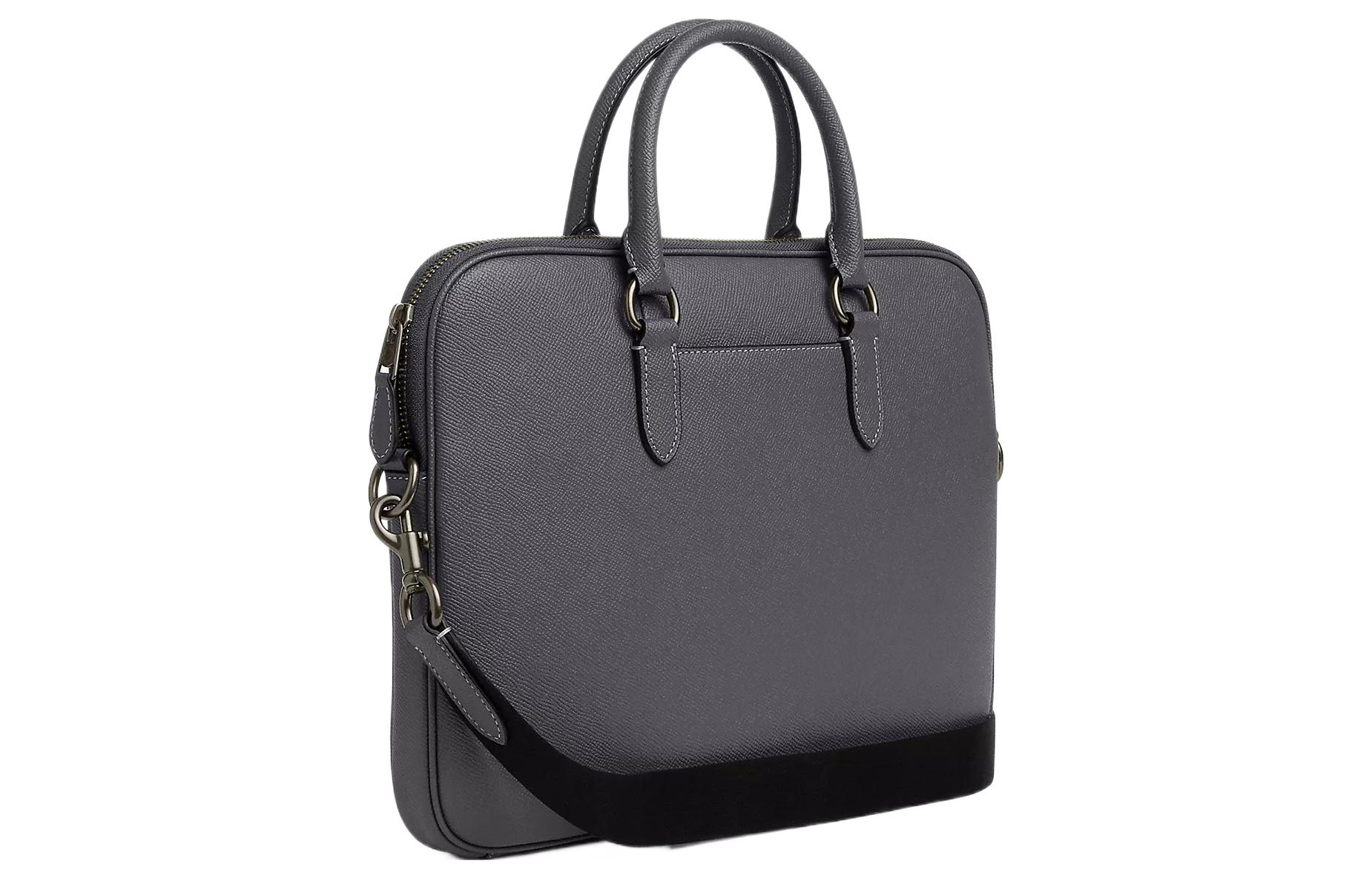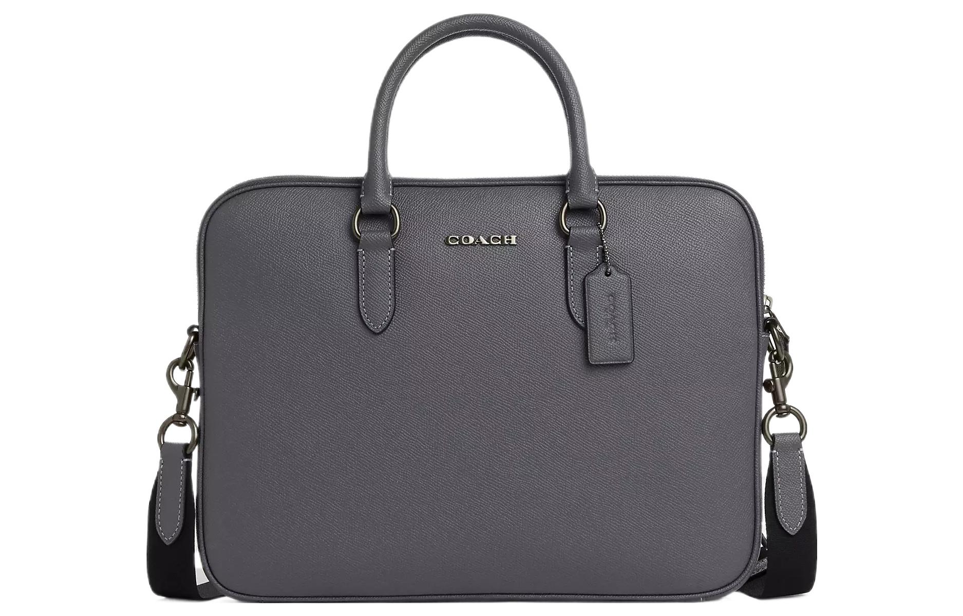 COACH Cow Split Leather Portable One Shoulder Crossbody Briefcase Large Men"s Industrial Gray