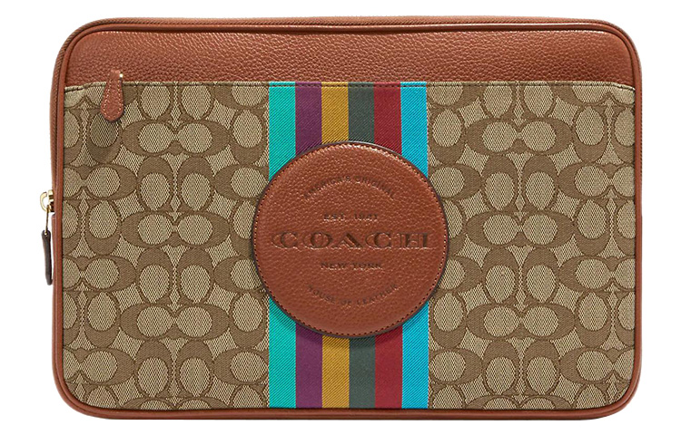 COACH Delicate Pebble Leather Clutch Laptop Bag Large Women"s Khaki