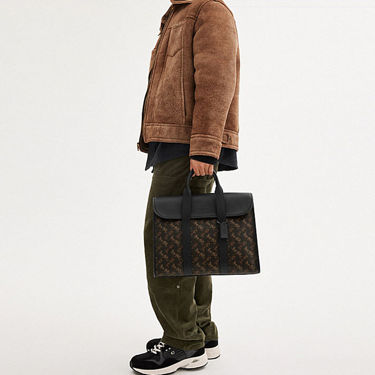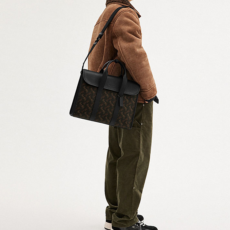 COACH Gotham Canvas With Leather Briefcase, One Shoulder Handbag Large Men"s Black