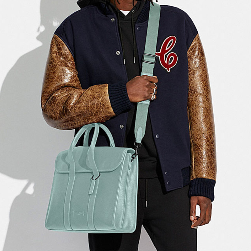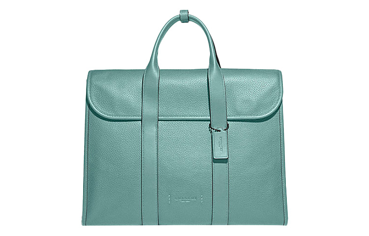 COACH Gotham Pebbled Leather Portable Crossbody Briefcase Laptop Bag Large Men"s Metal Mint Green