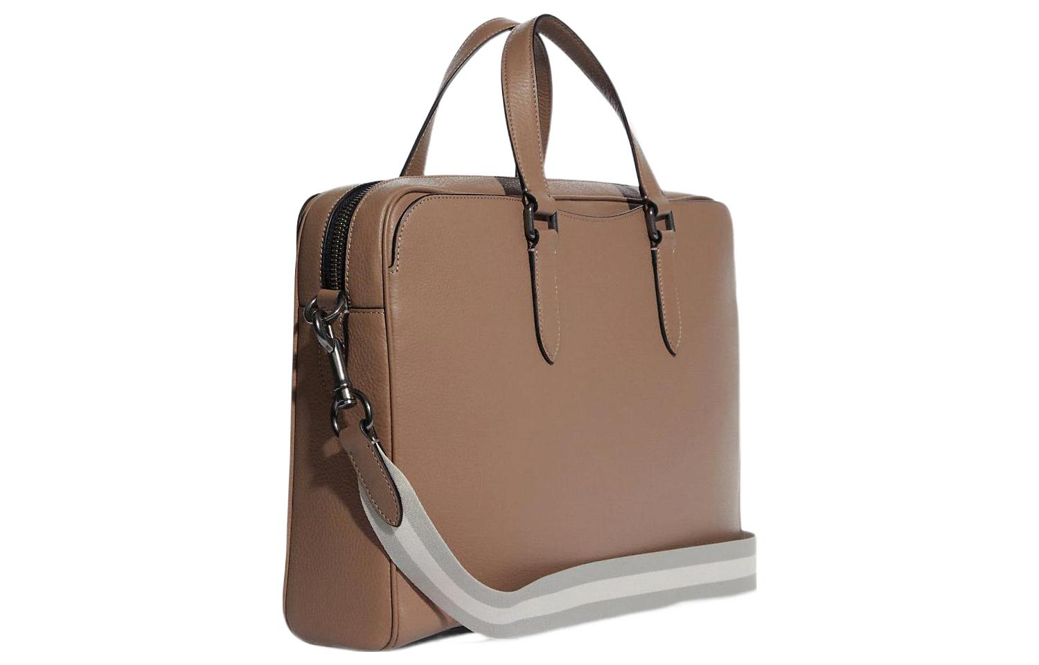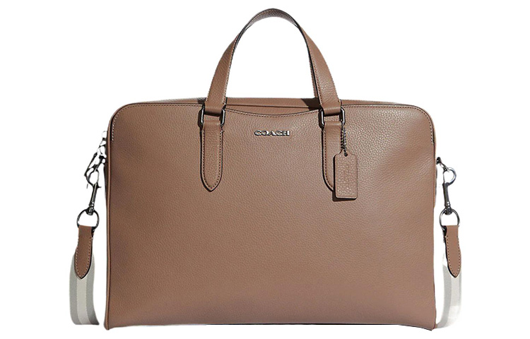 COACH Graham Pebbled Leather Laptop Bag, Crossbody Bag, Briefcase Large Men"s Khaki