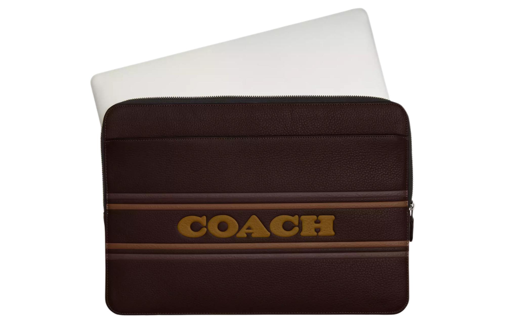 COACH Leather Laptop Bag Large Men"s Bronze With Mahogany