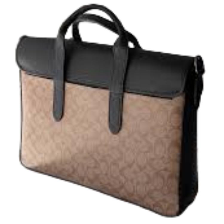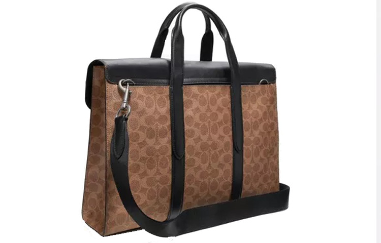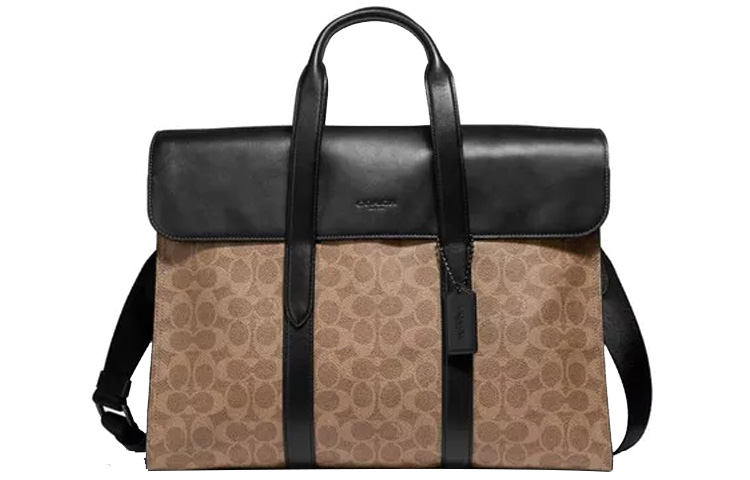 COACH Metropolitan Coated Canvas Portable One Shoulder Crossbody Flap Briefcase Regular Men"s Brown Black Multicolor