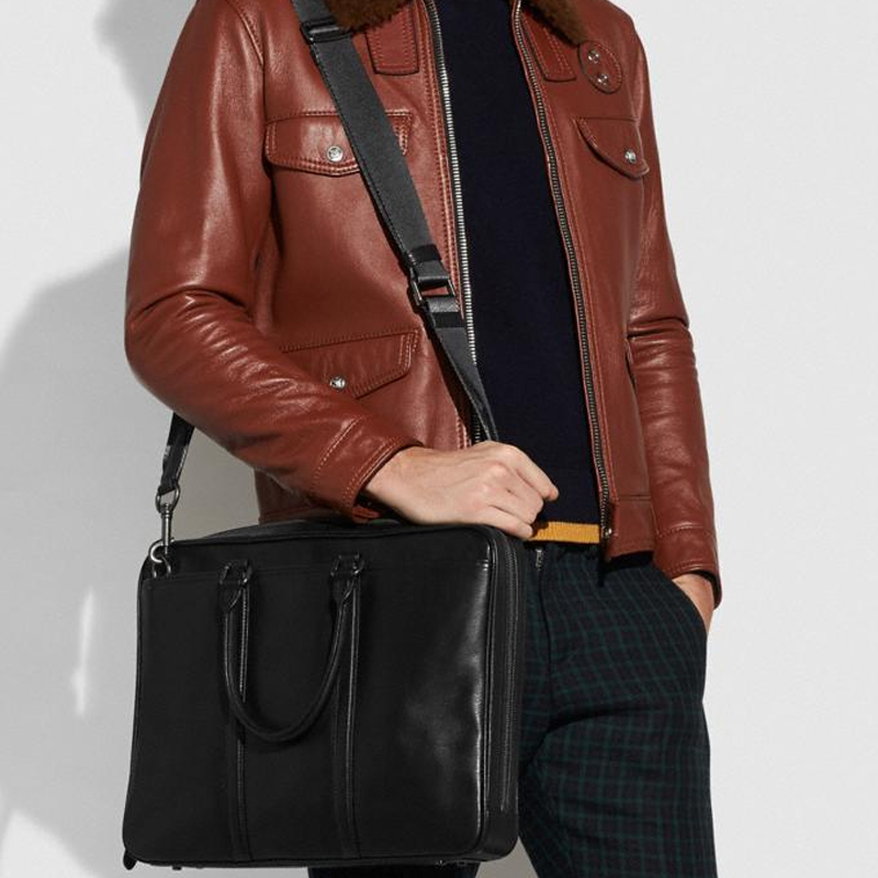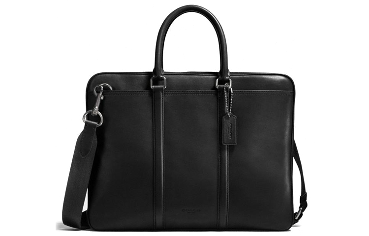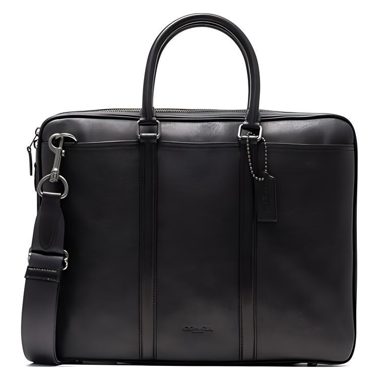 COACH Metropolitan Leather One Shoulder Crossbody Briefcase Handbag Men"s Pure Black
