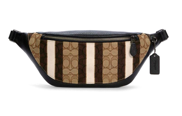 COACH Warren Canvas Cowhide Crossbody Bag, Sling Bag, Fanny Pack Large Men"s Khaki & Brown Multicolor