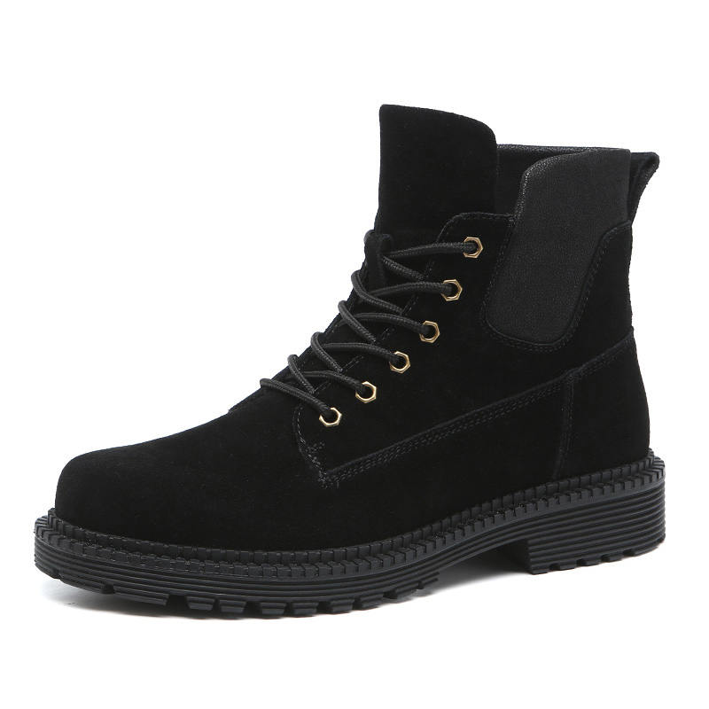 Devanro Cow Suede Short Combat Boots Men"s Black