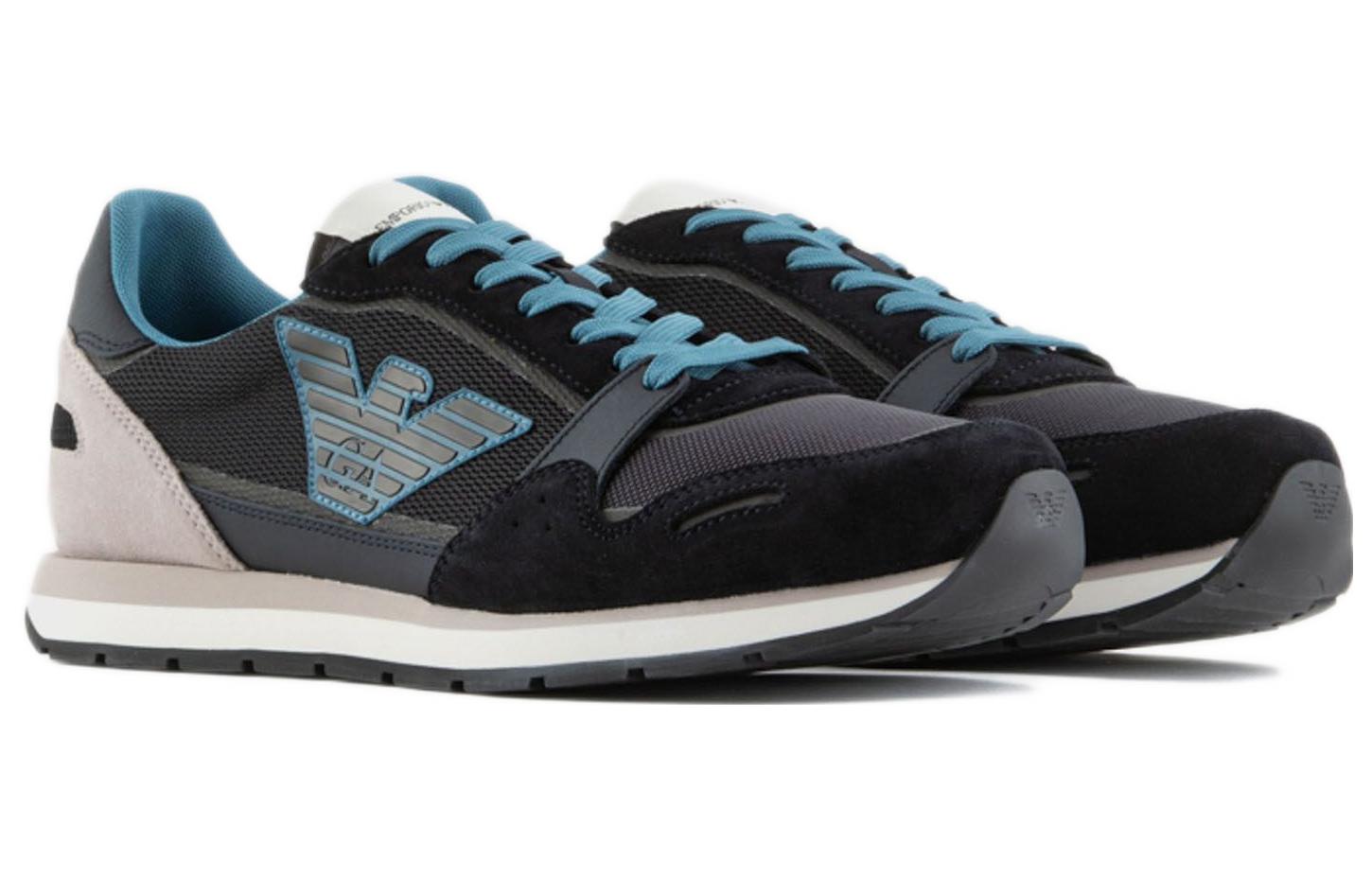 EMPORIO ARMANI Mesh Low top Sports Casual Shoes Men"s Blue Gray