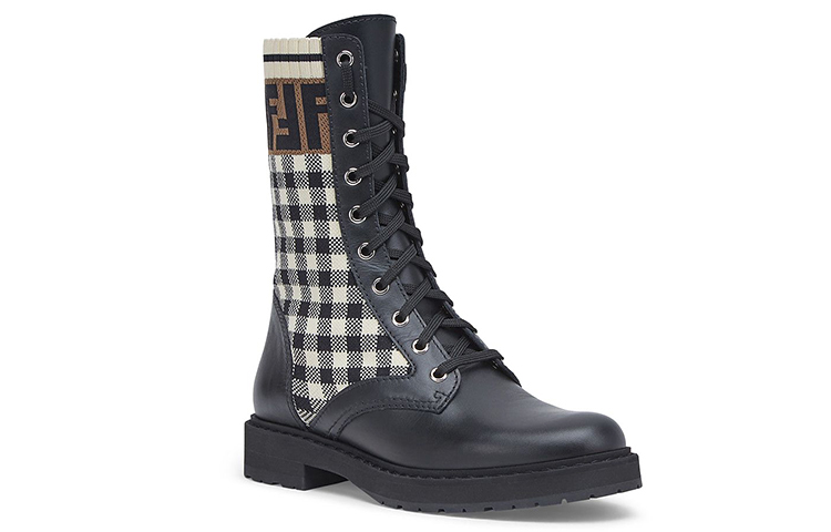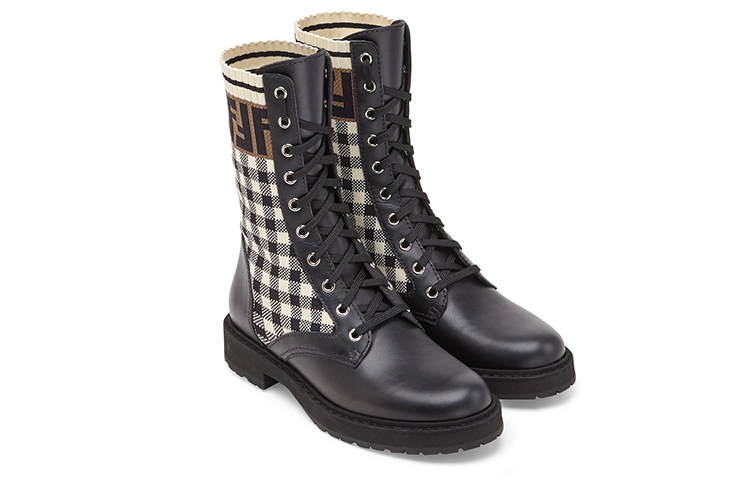 FENDI Women"s FF Rockoko Biker Boot "Black Checkerboard"