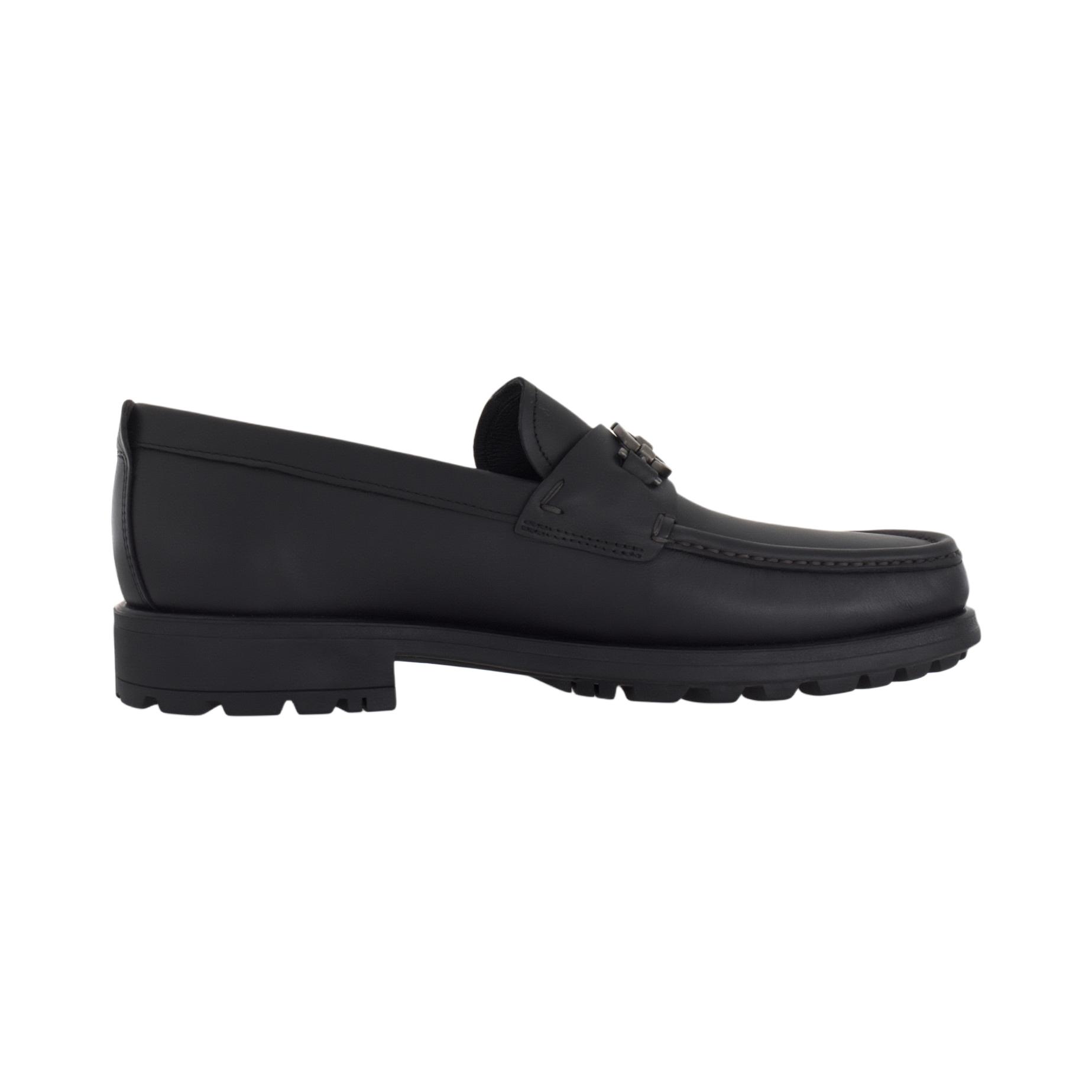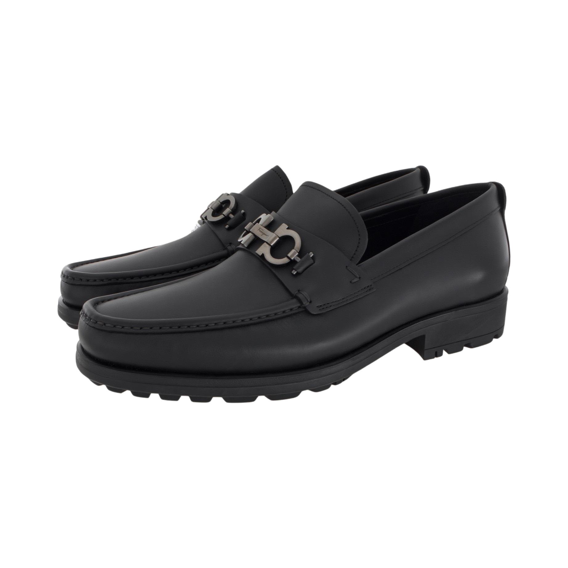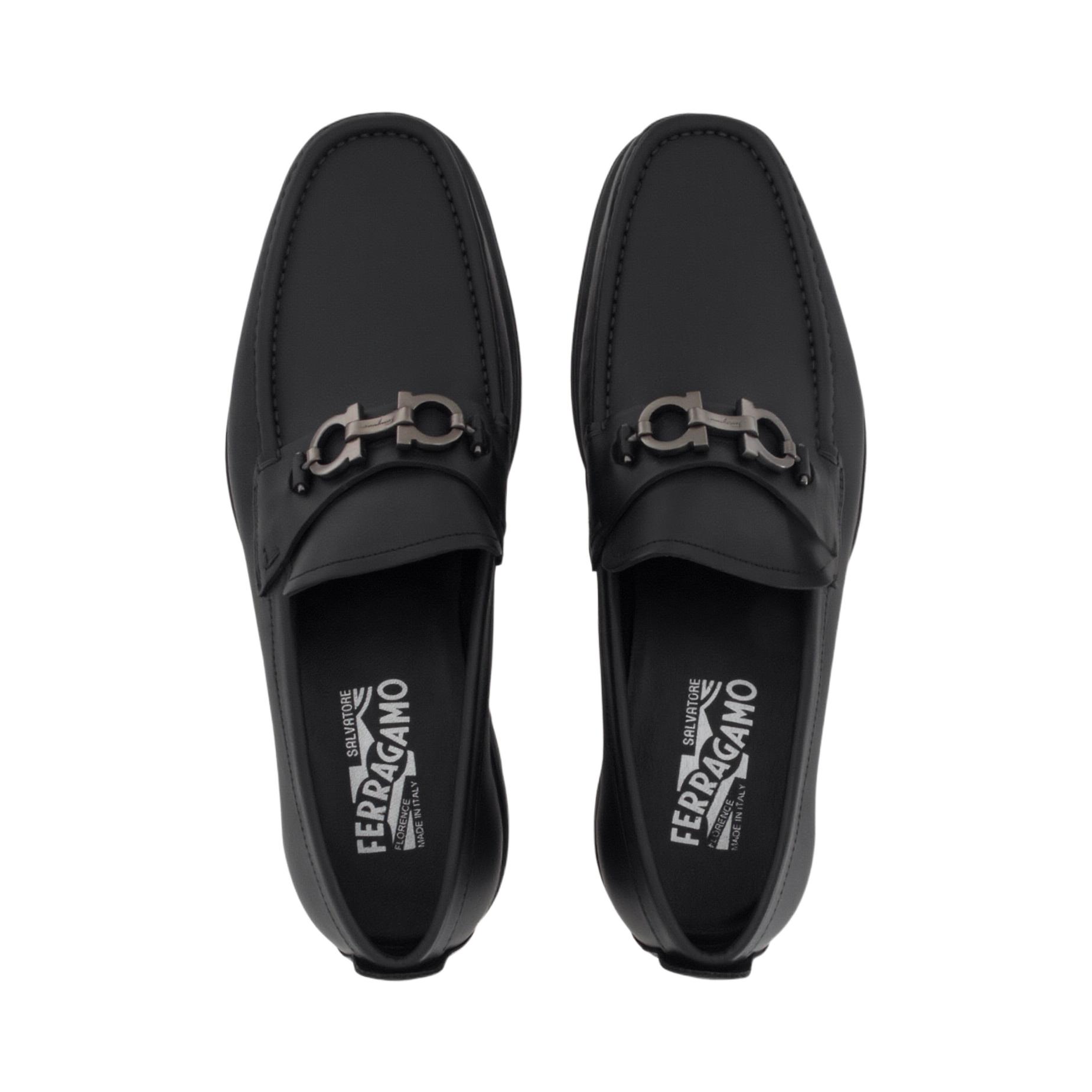FERRAGAMO Gancini Gancio Leather Loafers Men"s Black