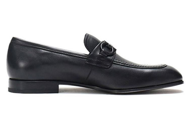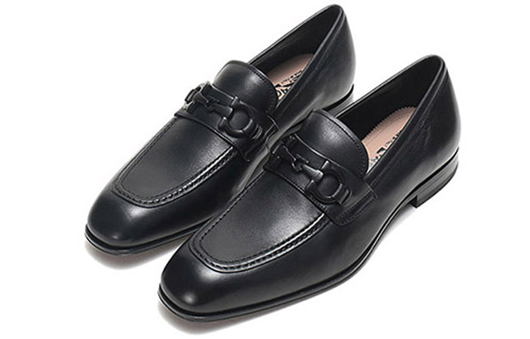 FERRAGAMO GANCINI Leather Casual Leather Shoes Men"s Black