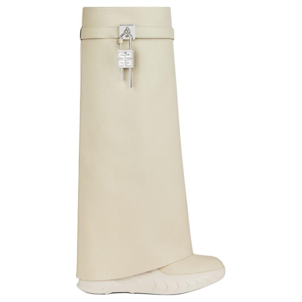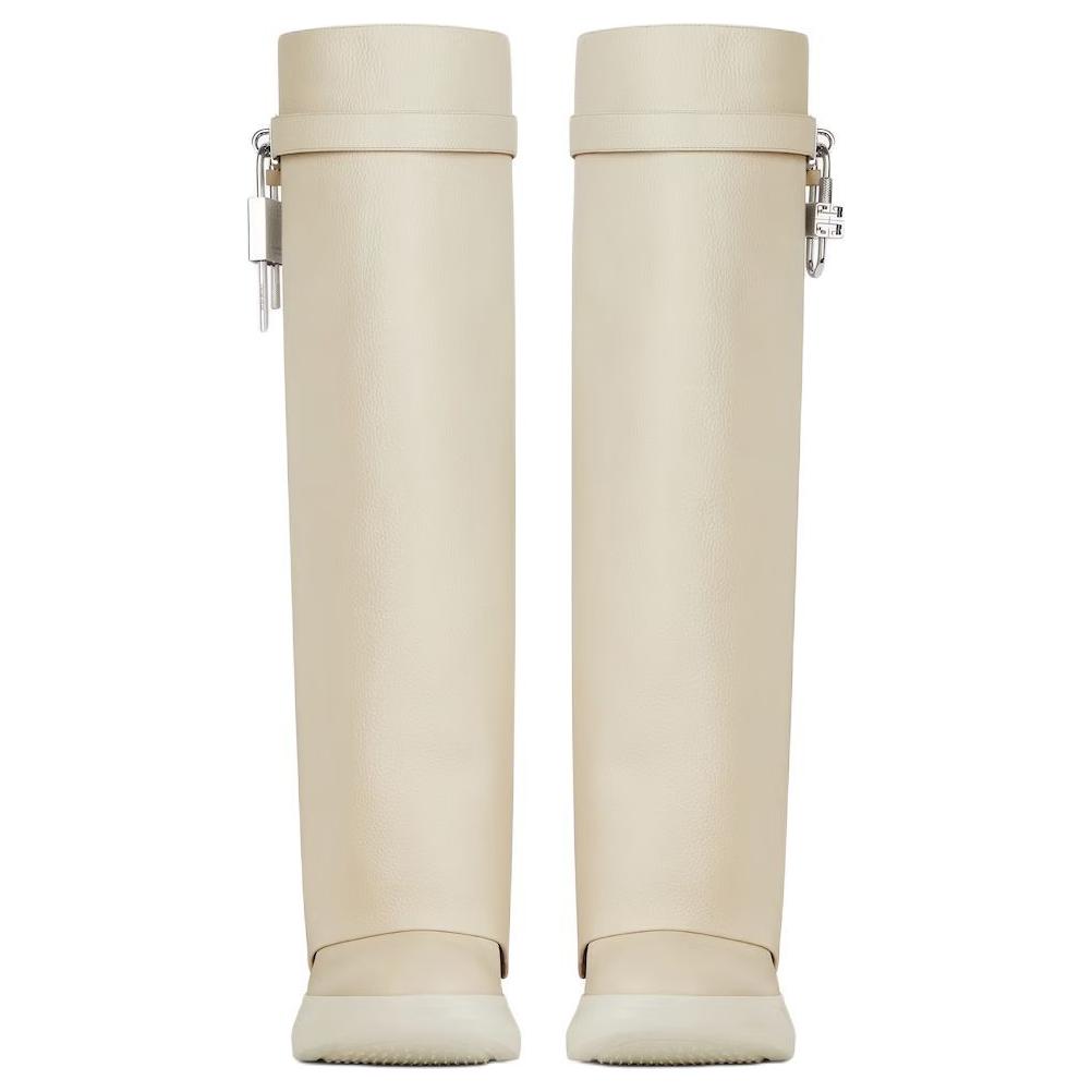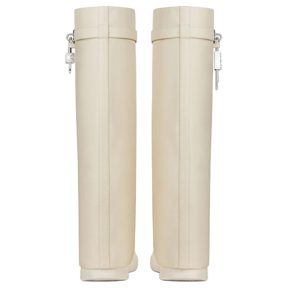Givenchy Shark Lock Cow Leather Knee high Boots 9cm Women"s Beige