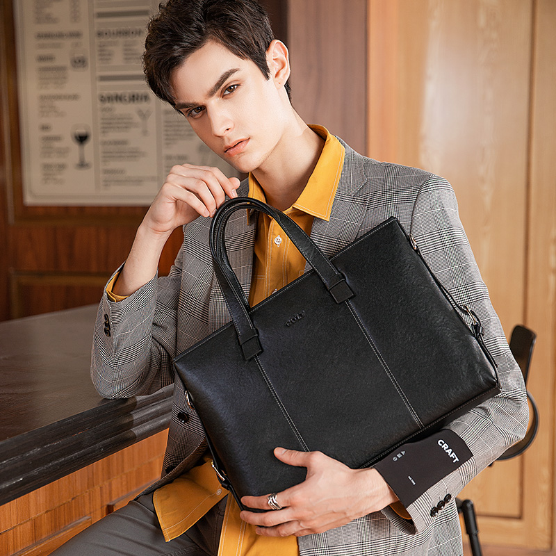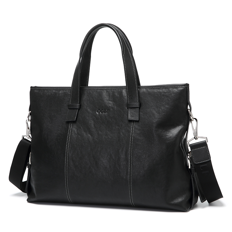 GOLF Cow Leather With Synthetic Leather 13.3 Inches Laptop Bag, Portable, One Shoulder Briefcase Large Men"s Black