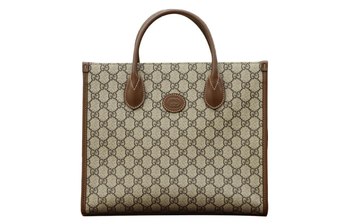 GUCCI Canvas With Leather Tote Shopping Bag, Shoulder Bag, Crossbody Bag, Handbag Small Unisex Ebony/Brown