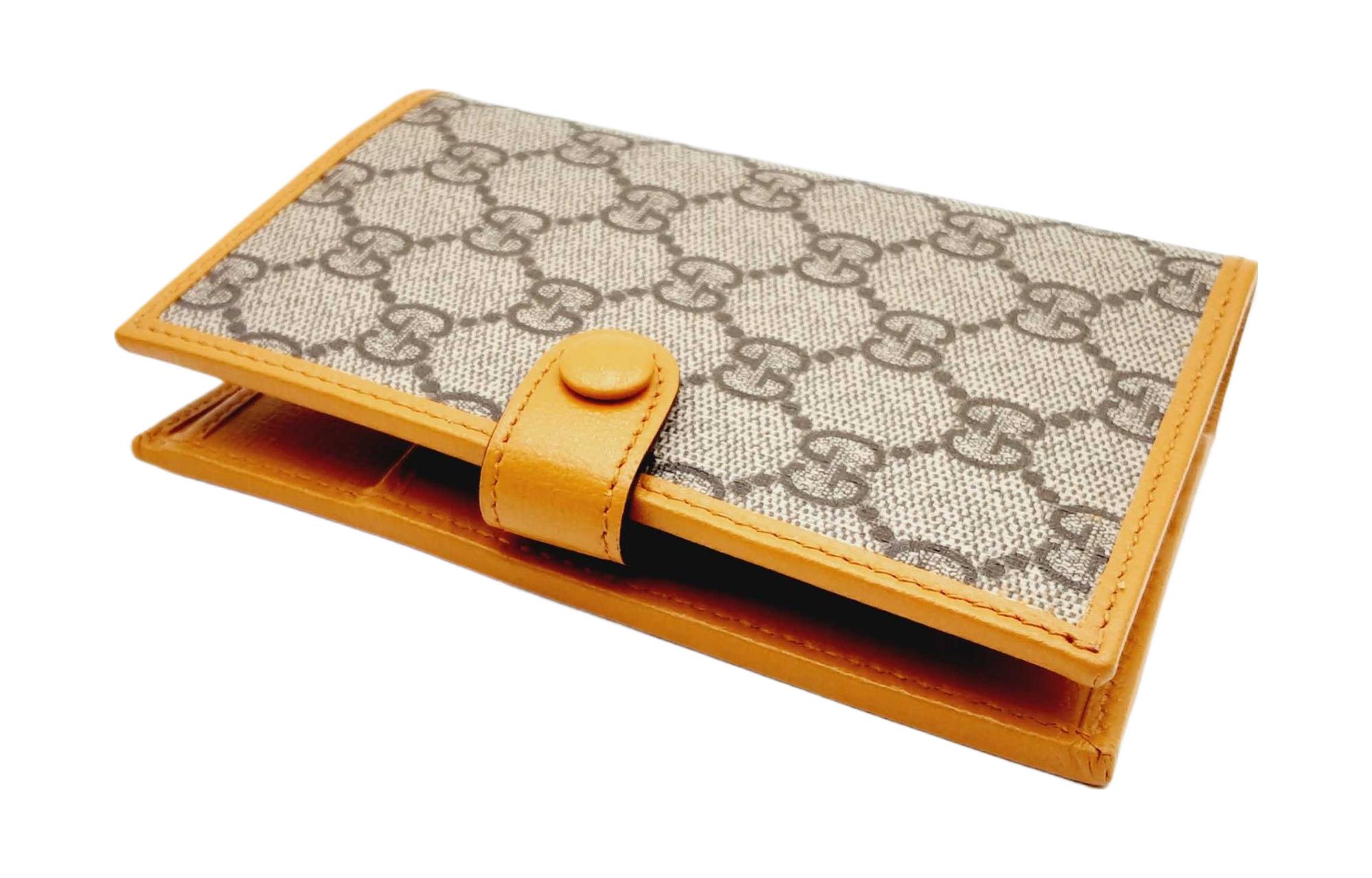 GUCCI Canvas With Leather Trim Canvas Bag Passport Holder Men"s Orange