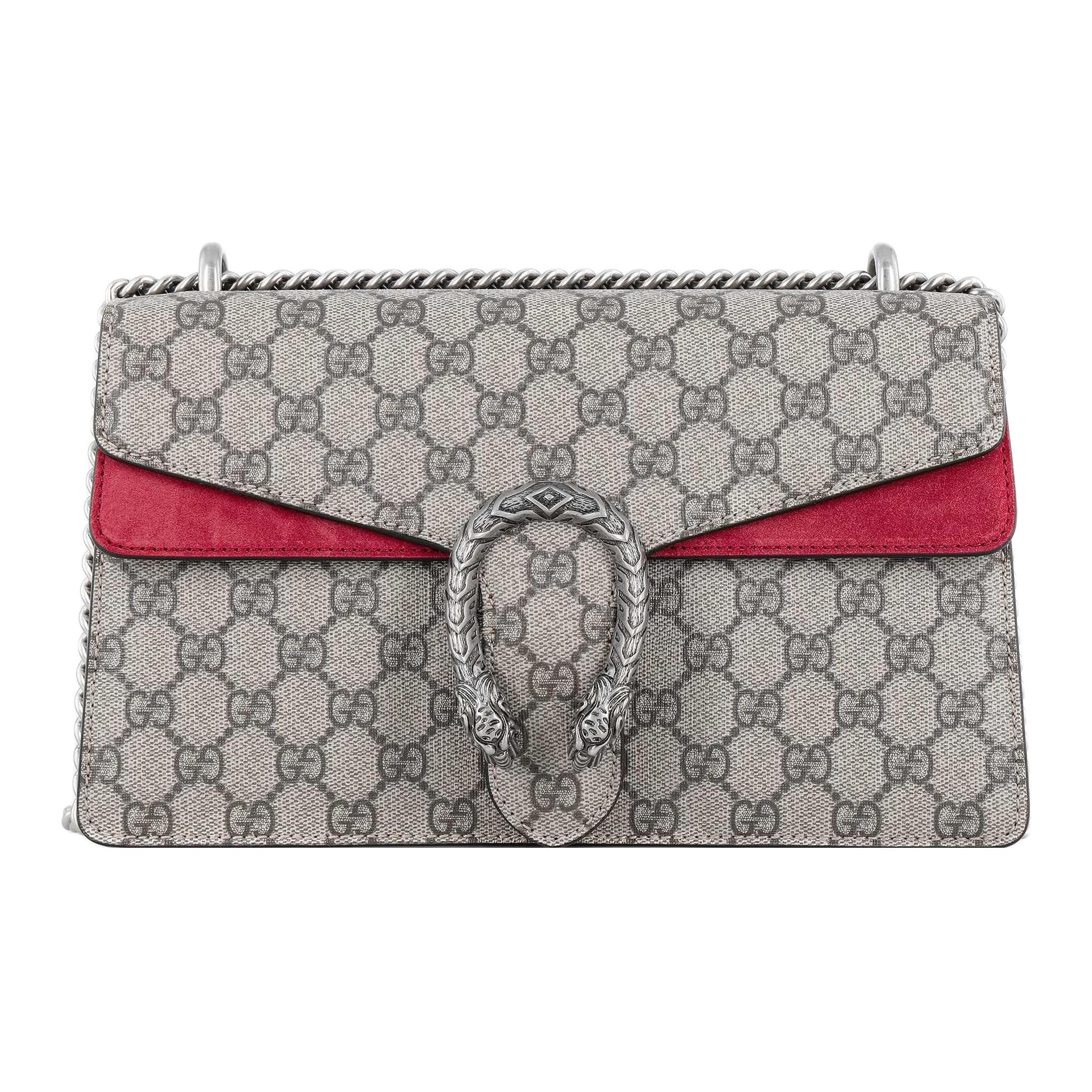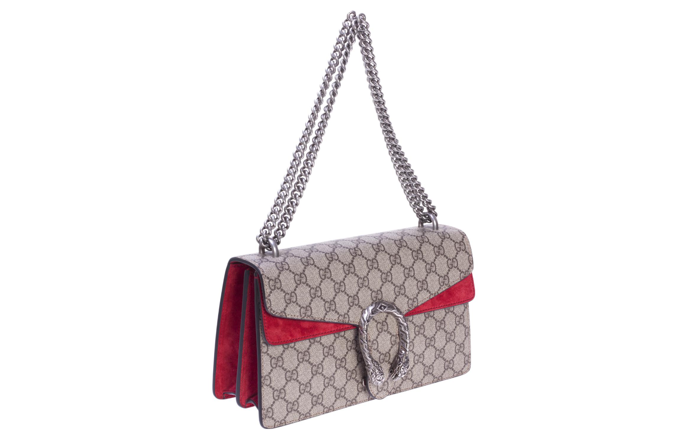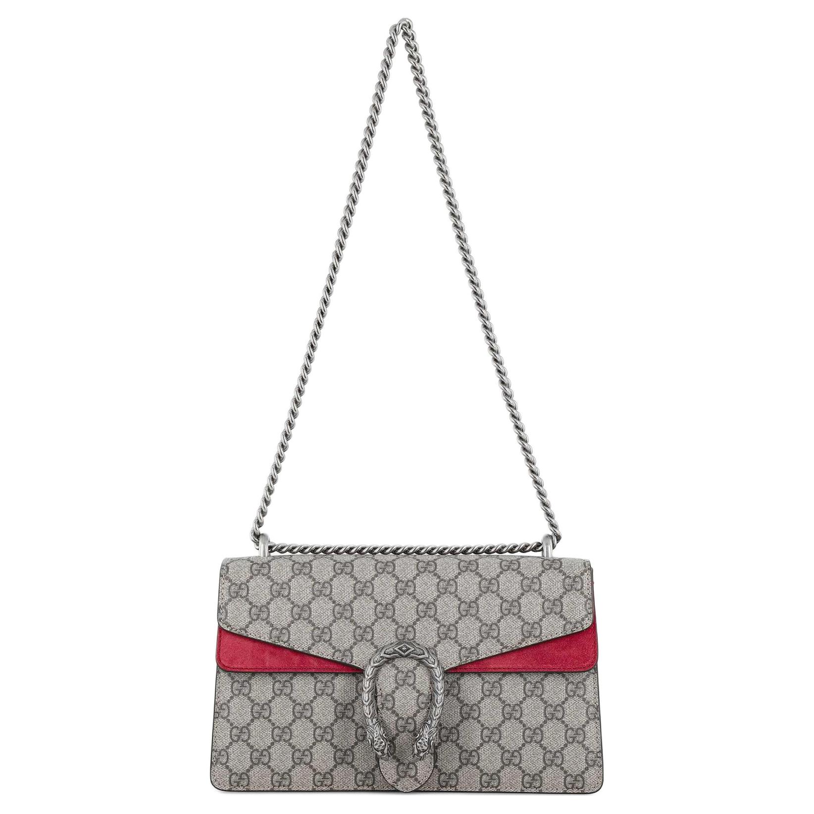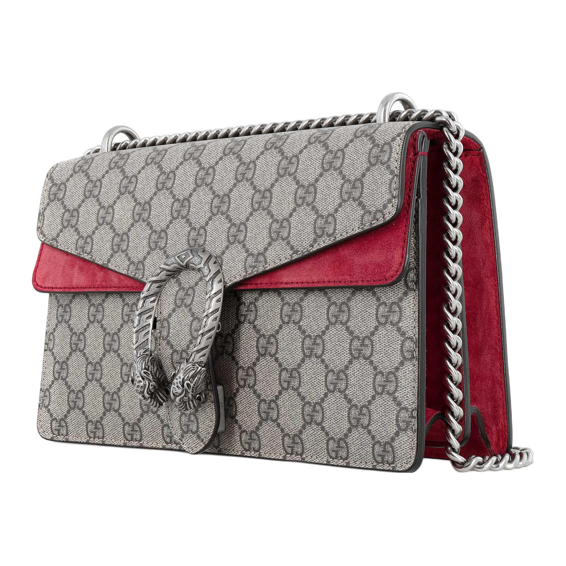 GUCCI Dionysus Canvas With Leather Shoulder Bag, Crossbody Bag Small Women"s Ebony & Red