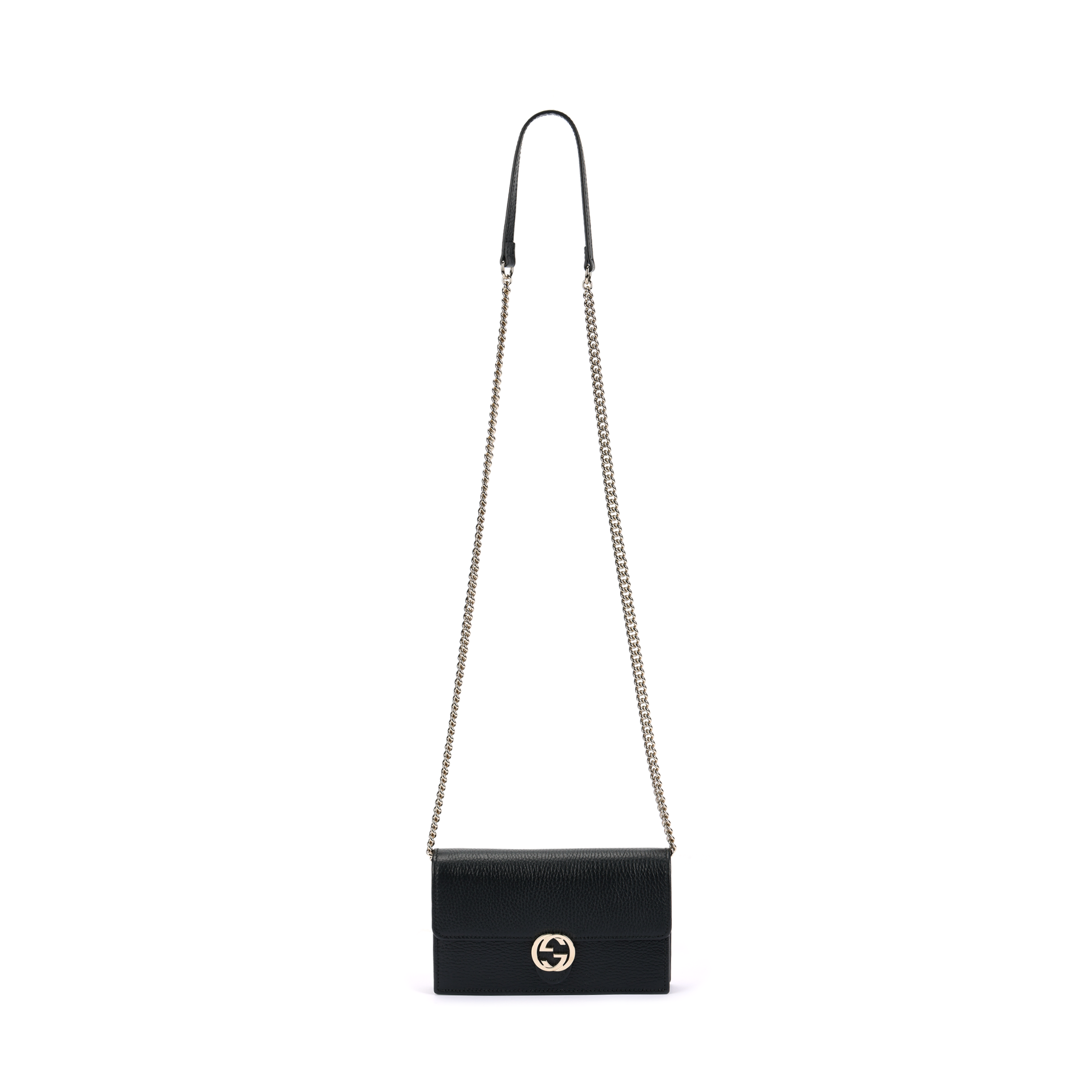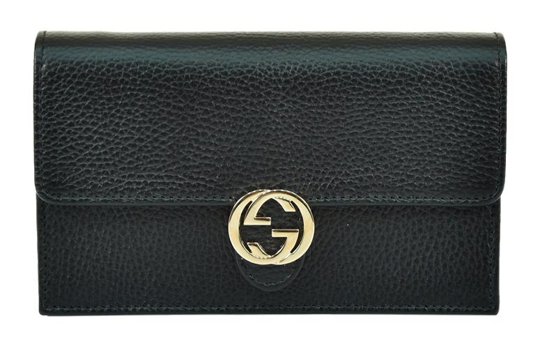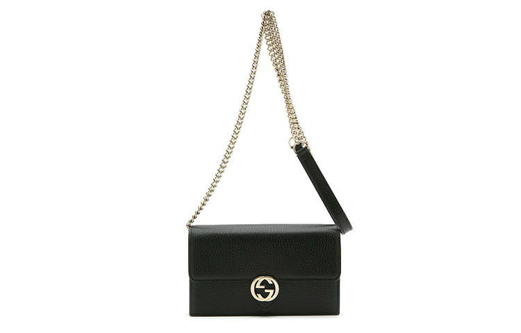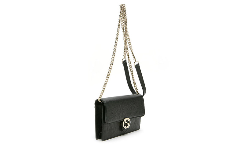 GUCCI Double G Leather WOC Chain Shoulder Messenger Bag Black