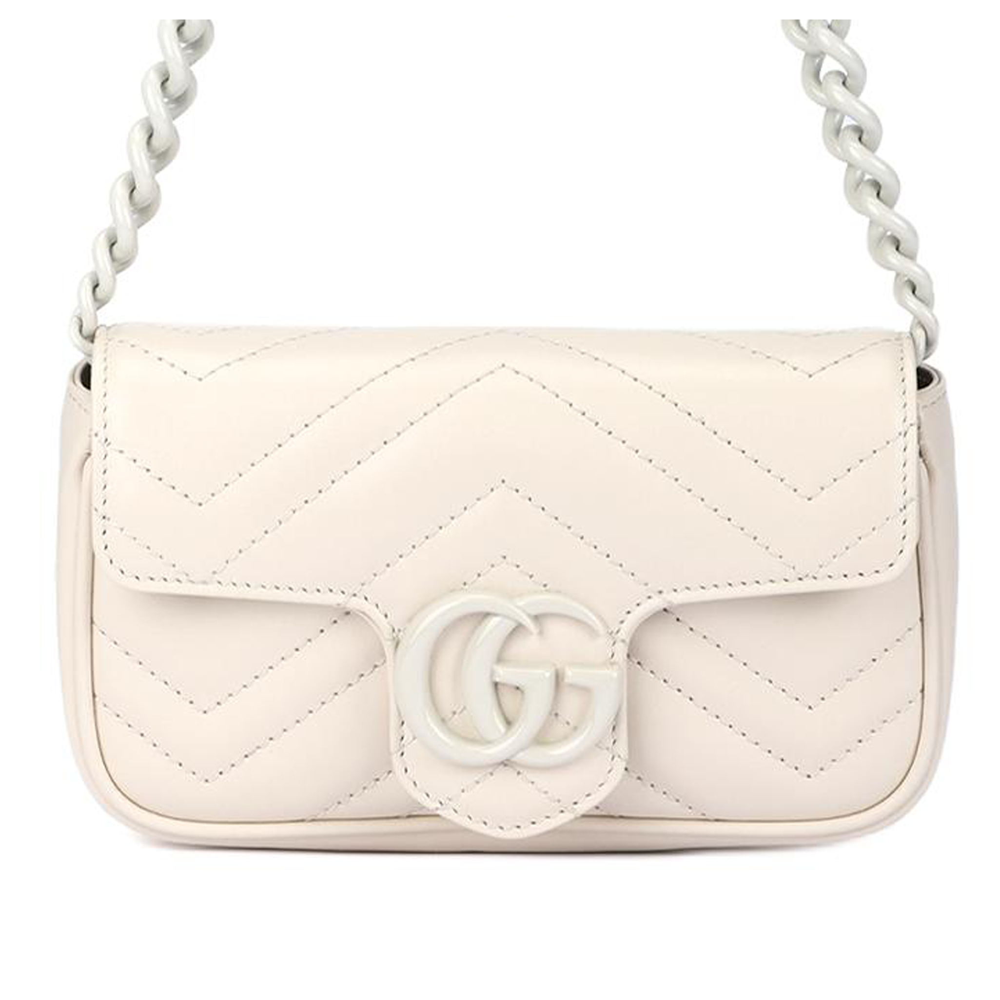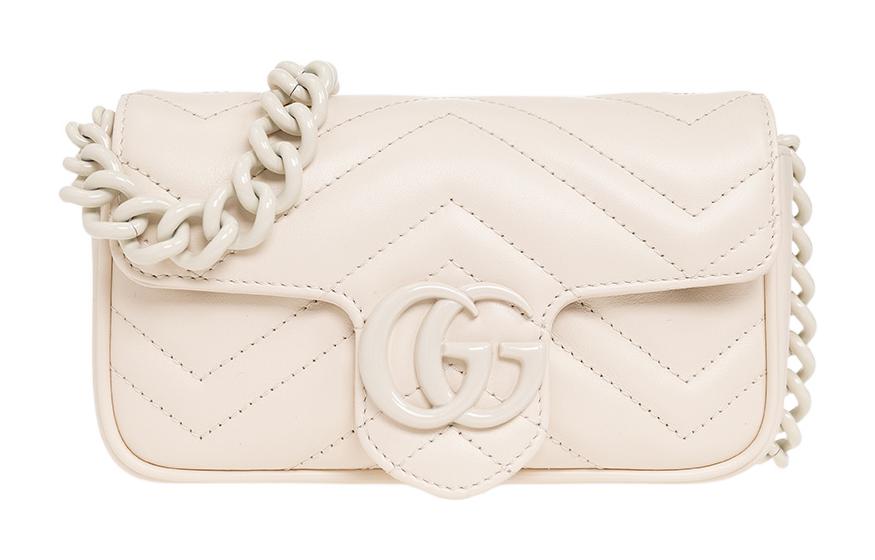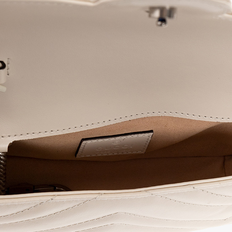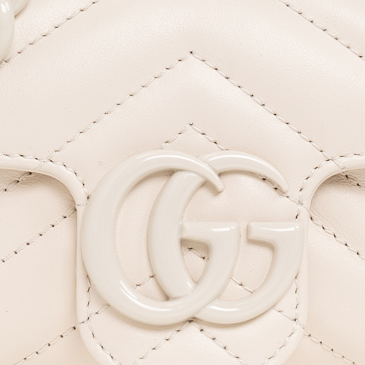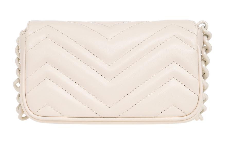 GUCCI GG Marmont V Shaped Quilted Leather Flap Bag Shoulder Bag, Fanny Pack Extra Mini Women"s White