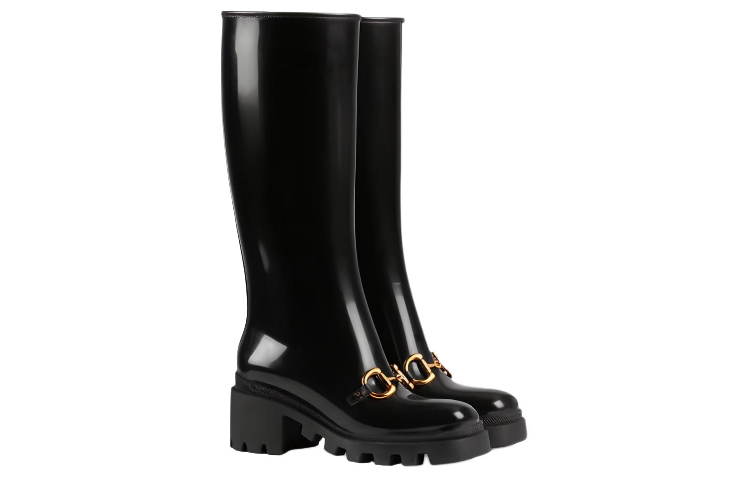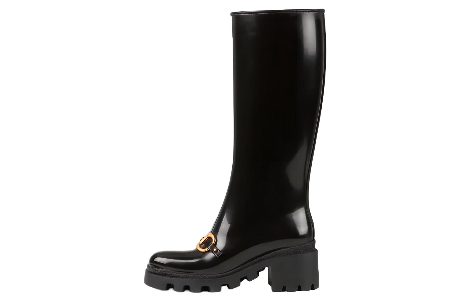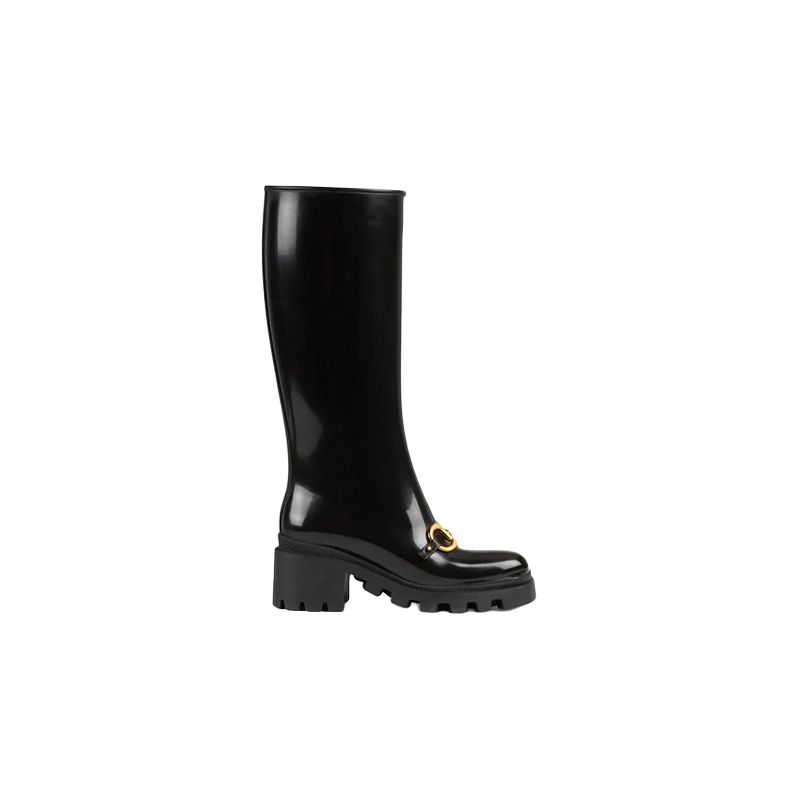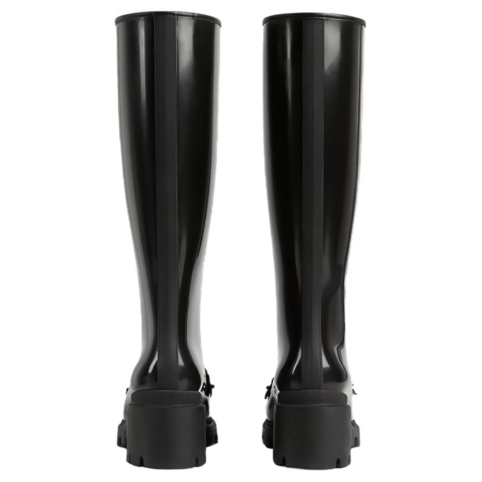 GUCCI Horsebit Knee High Boot Black Rubber Women"s