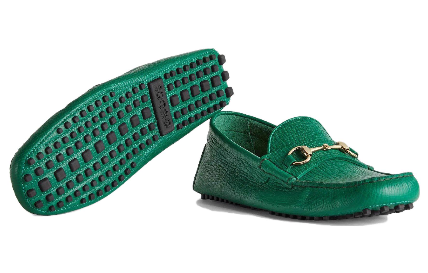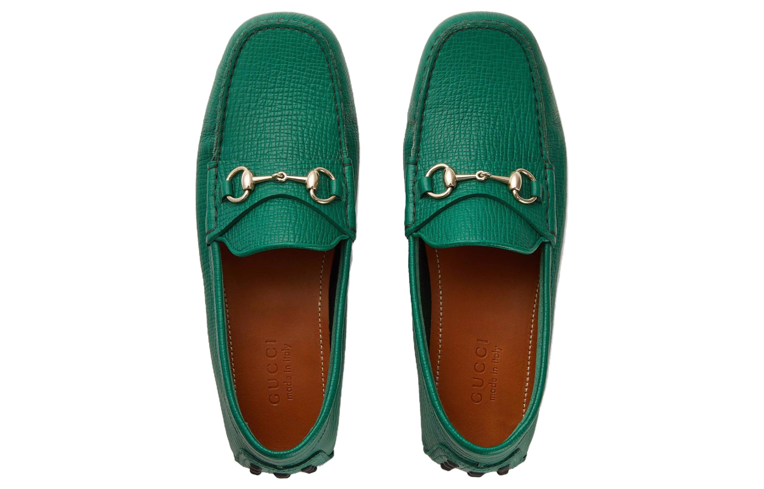 GUCCI Horsebit Leather Casual Shoes Men"s Green