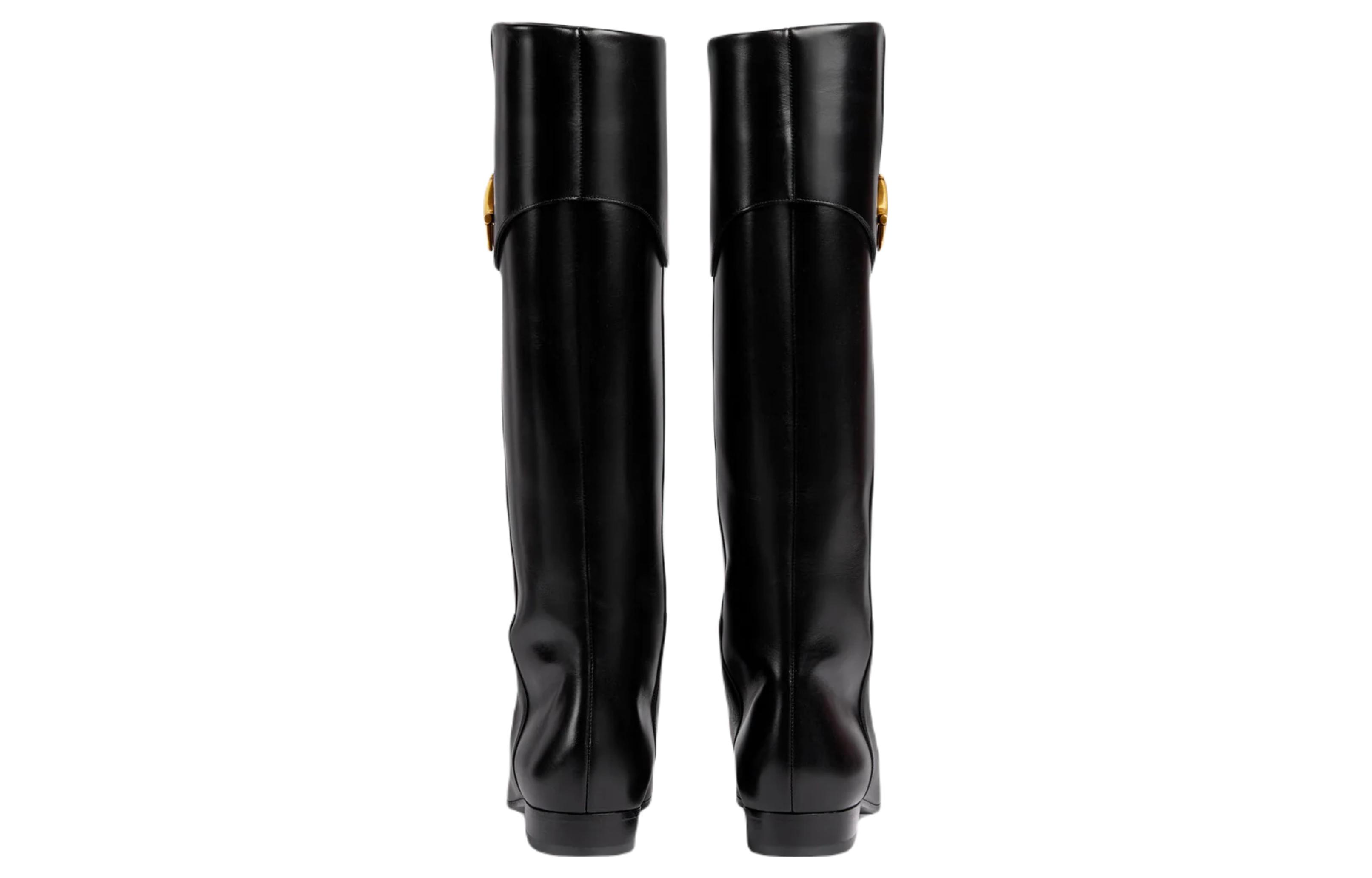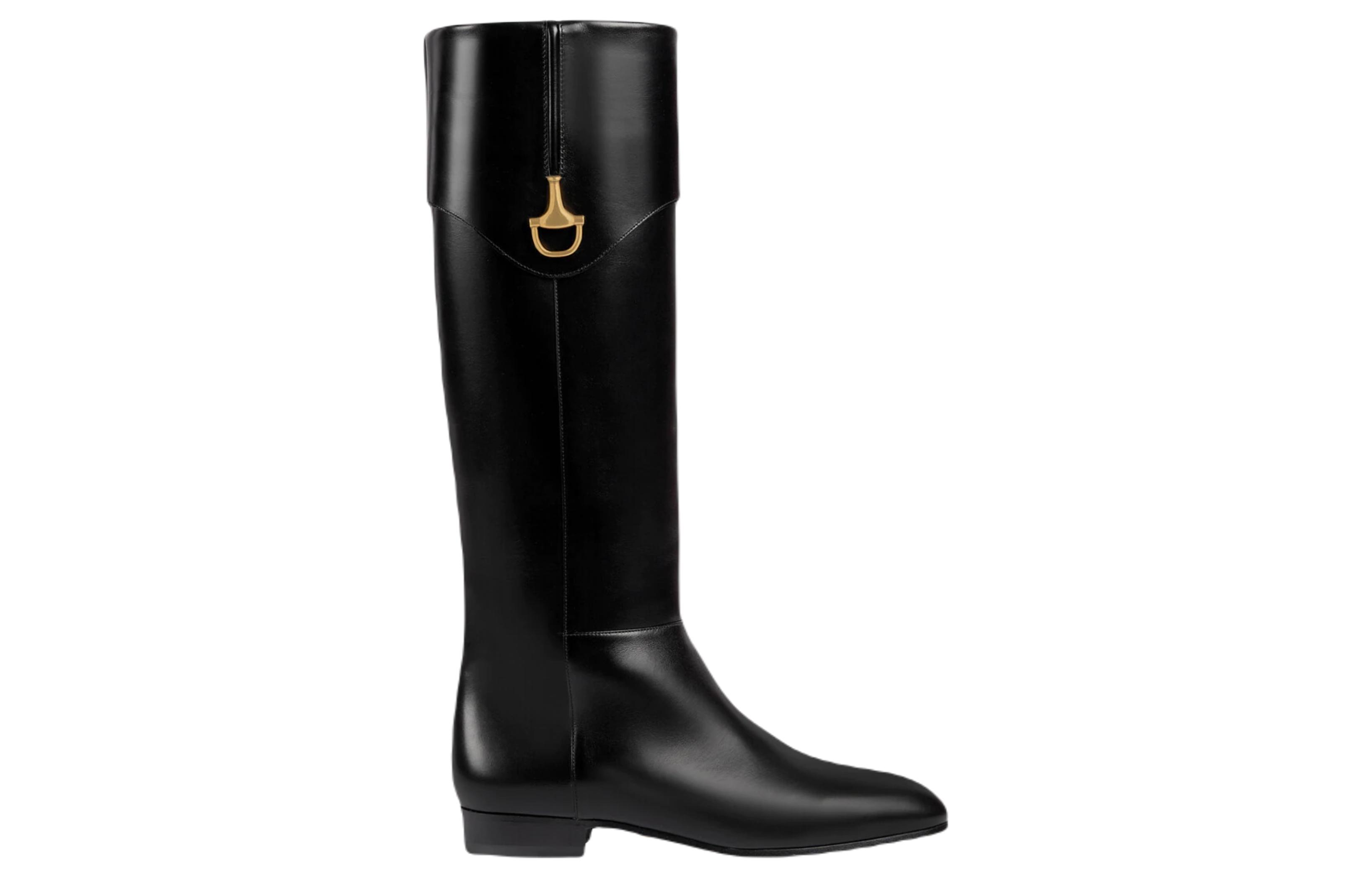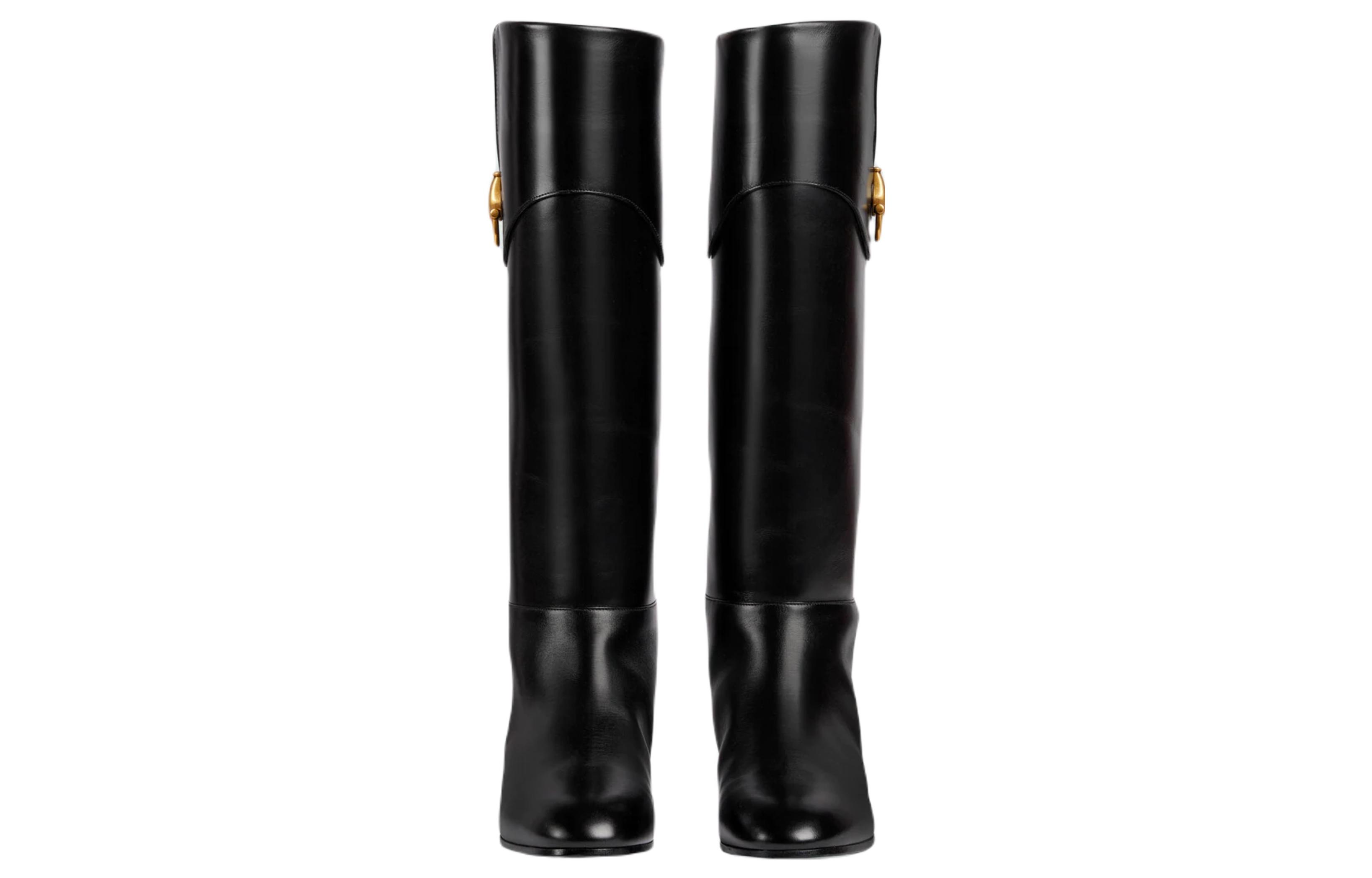 GUCCI Horsebit Leather Knee high Boots 2cm Women"s Black