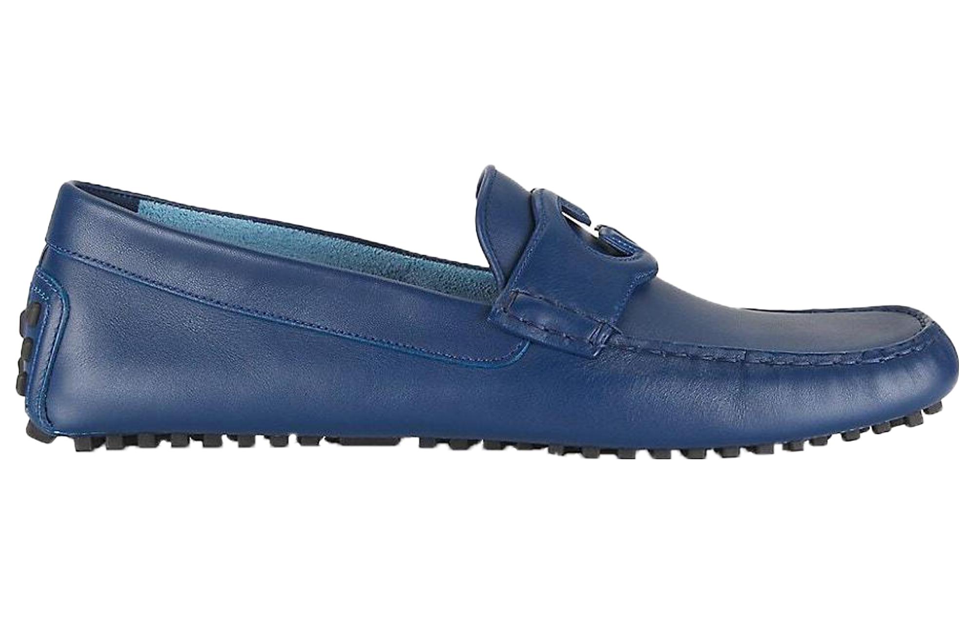 GUCCI Interlocking Collection Leather Loafers Men"s Blue